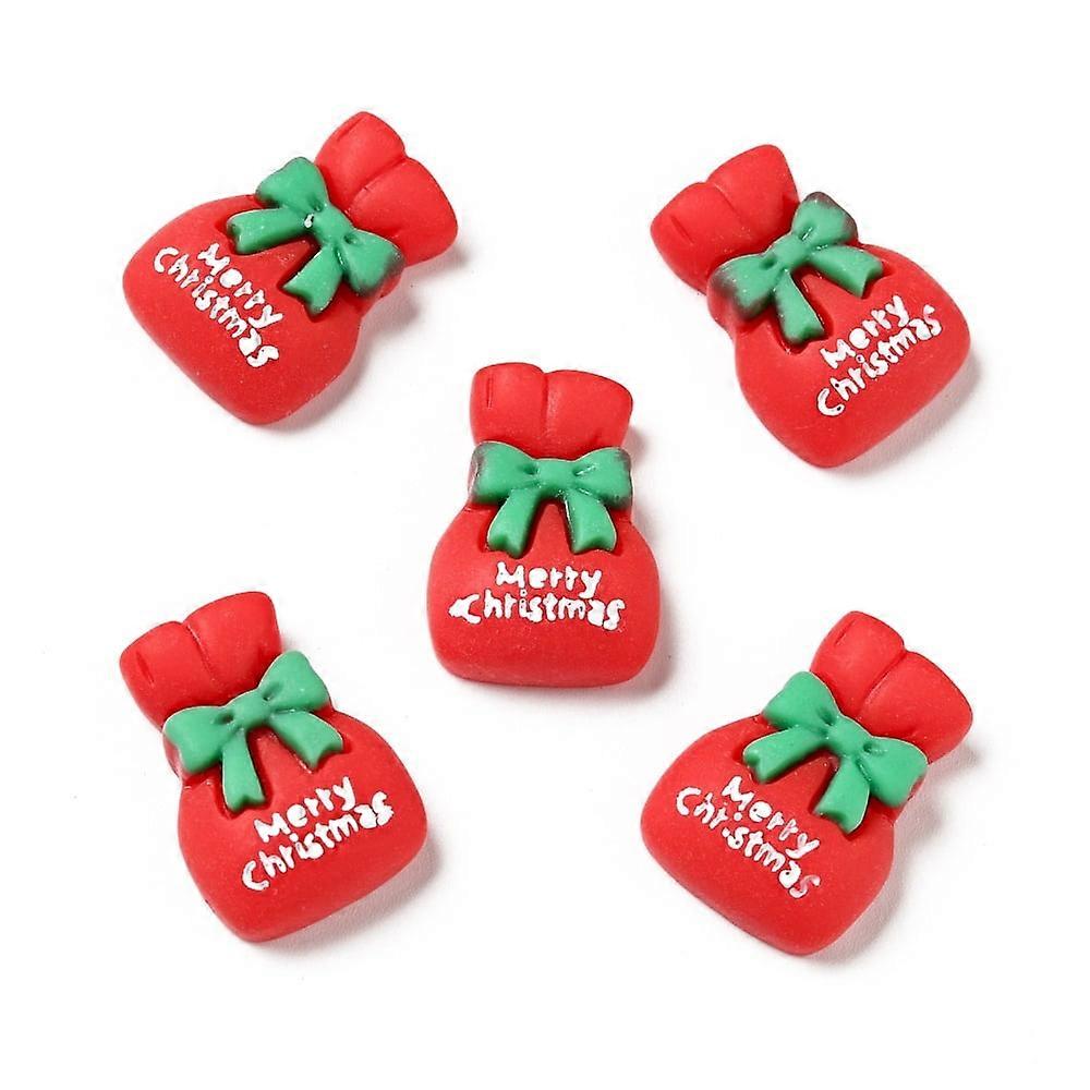 100pc Opaque Christmas Resin Cabochons Lucky Bag with Word Merry Christmas Red 21.5x15x7mm