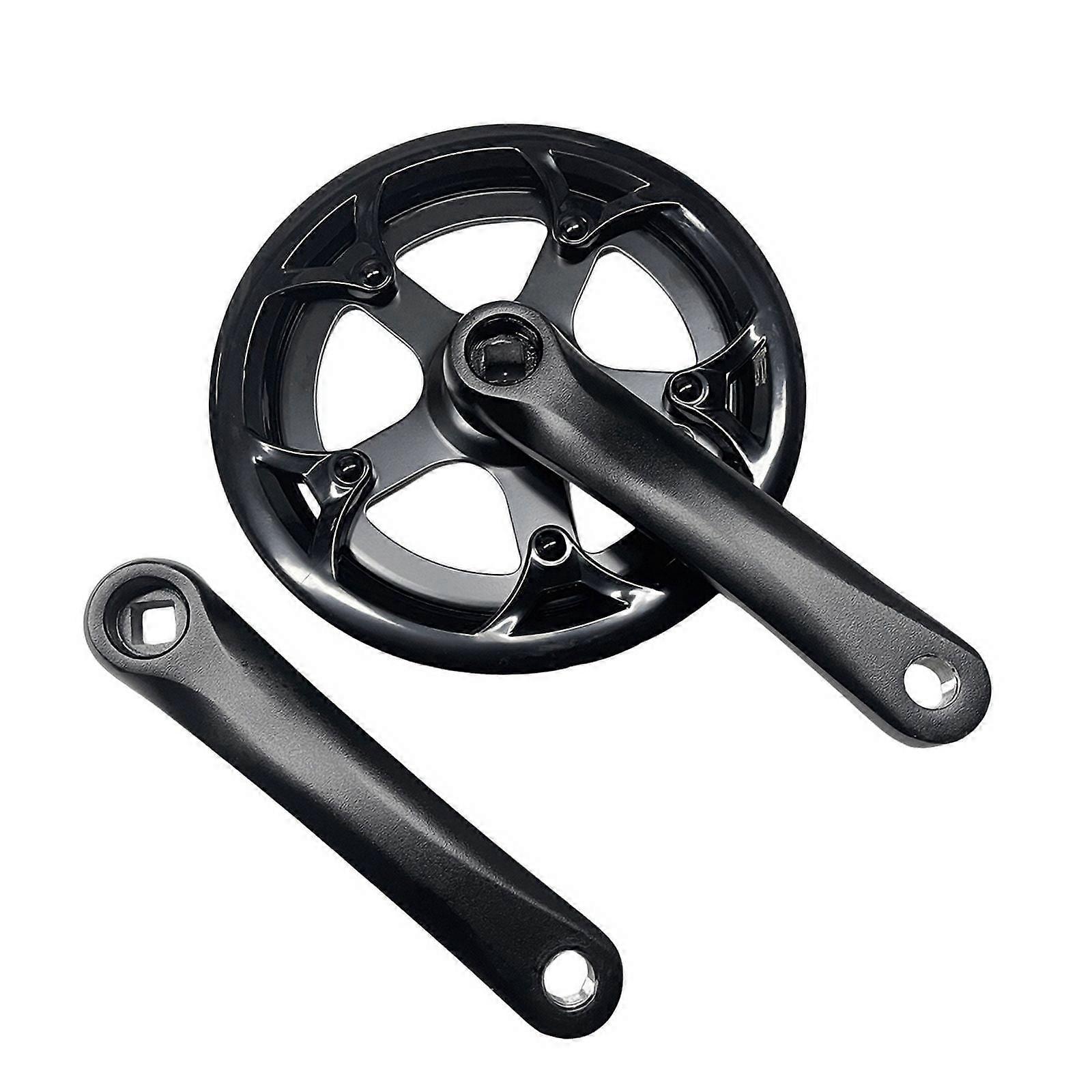 Model: 42T Number of teeth: 42 teeth Crankset diameter: 17.5cm Crank size: 152mm (the distance between the center points of the two holes) Material: Aluminum alloy colour: Black Package Contents: 1 x Crank set Only the above package content, other products are not included. Note: Light reflection and different displays may cause the color of the item in the picture a little different from the real thing. The measurement allowed error is +/- 1-3cm. A good replacement for bike repair and upgradation, compatible with many bike models. , high axial strength and compatibility. This product is suitable for retrofit folding bike, city bike, electric bike. Standard precision machining, chain retention, increases service life, and reduces friction.