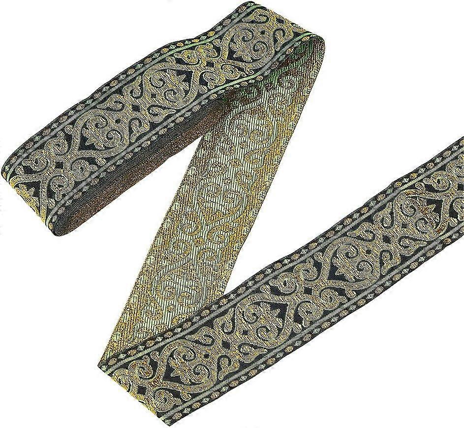7.66 Yards Ethnic Jacquard Ribbon, 2" Wide Vintage Embroidered Black Golden Polyester Trim for Boho Sewing Crafts