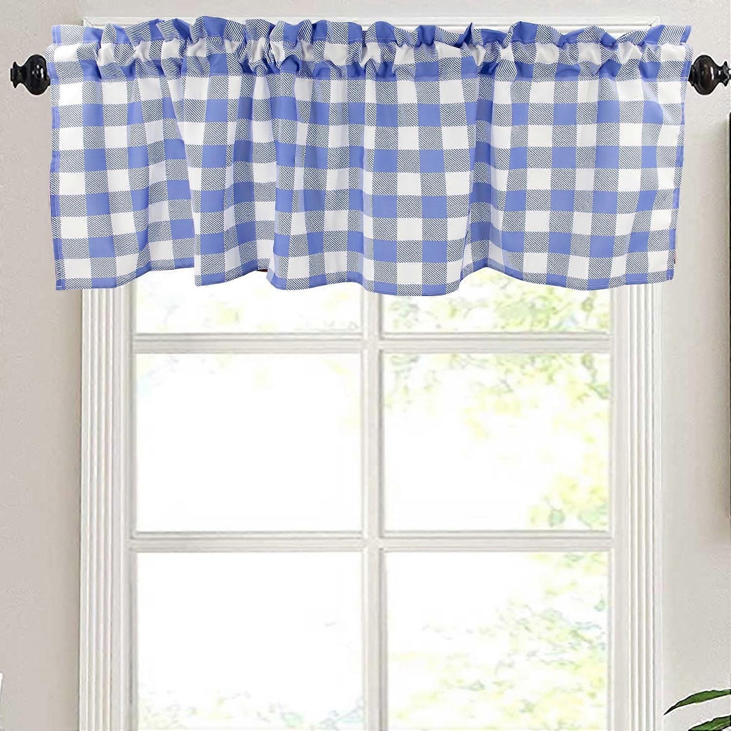 2 Pack Buffalo Check Plaid Cotton Window Valances PERFECT SIZE WITH LARGE ROD POCKET: The package includes 2 window curtain valances Measures: 56"W x 16"L, fits standard windows 24” – 48” 3.2 inch rod pocket which fits up to 1.6 inch diameter rodsVANTAGE AND CLASSIC BUFFALO CHECK DESIGN: Classic buffalo check design works well with many decorating styles like French country style, modern farmhouse style etc.EASY TO USE AND MACHINE WASHABLE Machine washable and easy to install and maintain 2 pack window valances, convenient to change and wash Perfect Size With Large Rod Pocket: The package includes 2 Plaid window curtain valances. Measures: 56"W x 16"L, fits standard windows 24” – 48”. With 2.7 inch rod pocket which fits up to 1.6 inch diameter basic or decorative curtain rods. Easy to hang on the check curtains Classic Buffalo Check Design: Classic buffalo check design works well with many decorating styles like French country style, modern farmhouse style etc., add a bright color in your kitchen, living room or dining room High Quality And Machine Washable: It is in good quality, soft, durable and bright color. The color will not fade after long-time use. And machine washable with cold water on gentle cycle. Ironing is also acceptable Easy To Use: The buffalo check window valances are very easy to install and maintain, just hang up, and you can enjoy your decorative windows. 2 pack window valances, convenient to change and wash Multi Occasions: The 2 pack buffalo check window valances not only match the kitchen room but also perfect for living room, dining room or nursery. Provides an easy way to add character to your windows or rooms