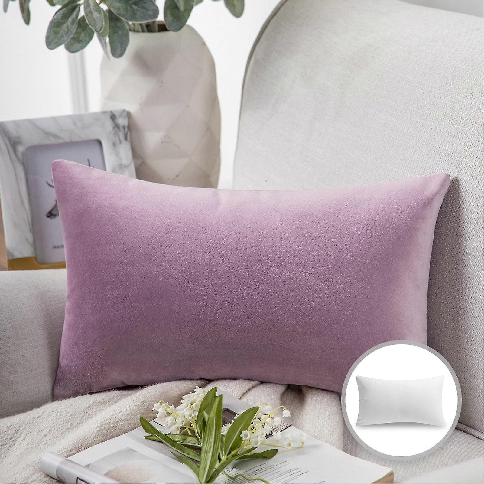 Phantoscope Soft Silky Velvet Series Decorative Throw Pillow, 12" x 20", Pink Purple, 1 Pack