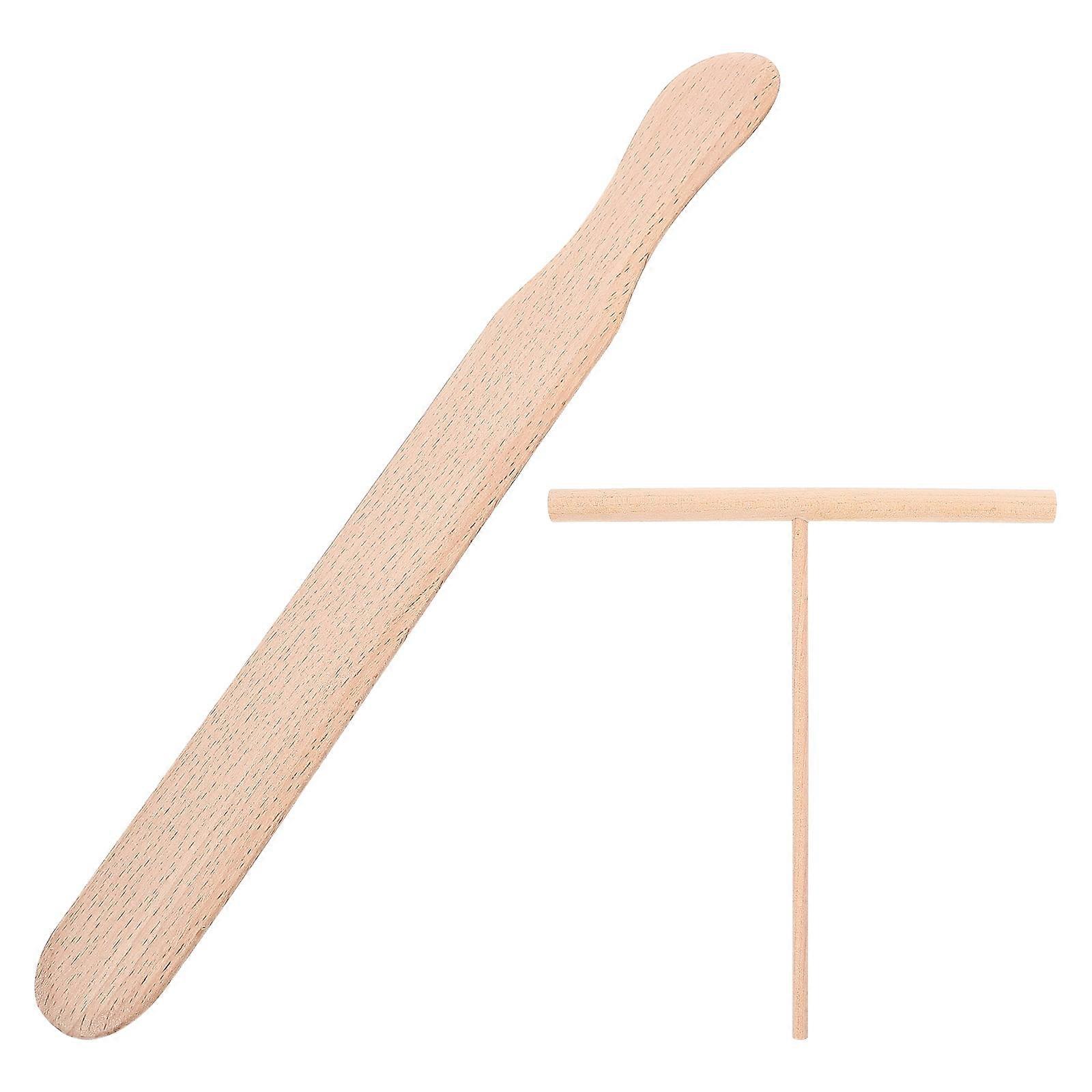 Kit 2 Pcs Wooden Rake Pancakes Spatula for Tortillera Griddle Maker Machine Cooking Utensils