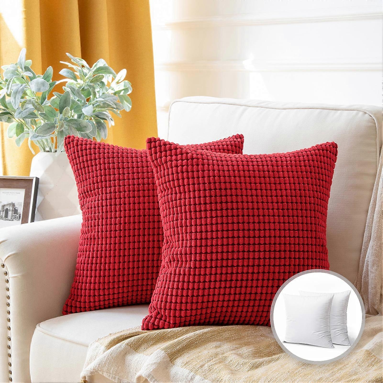Soft Corduroy Corn Striped Velvet Series Decorative Throw Pillow, 18" x 18", Red, 2 Pack