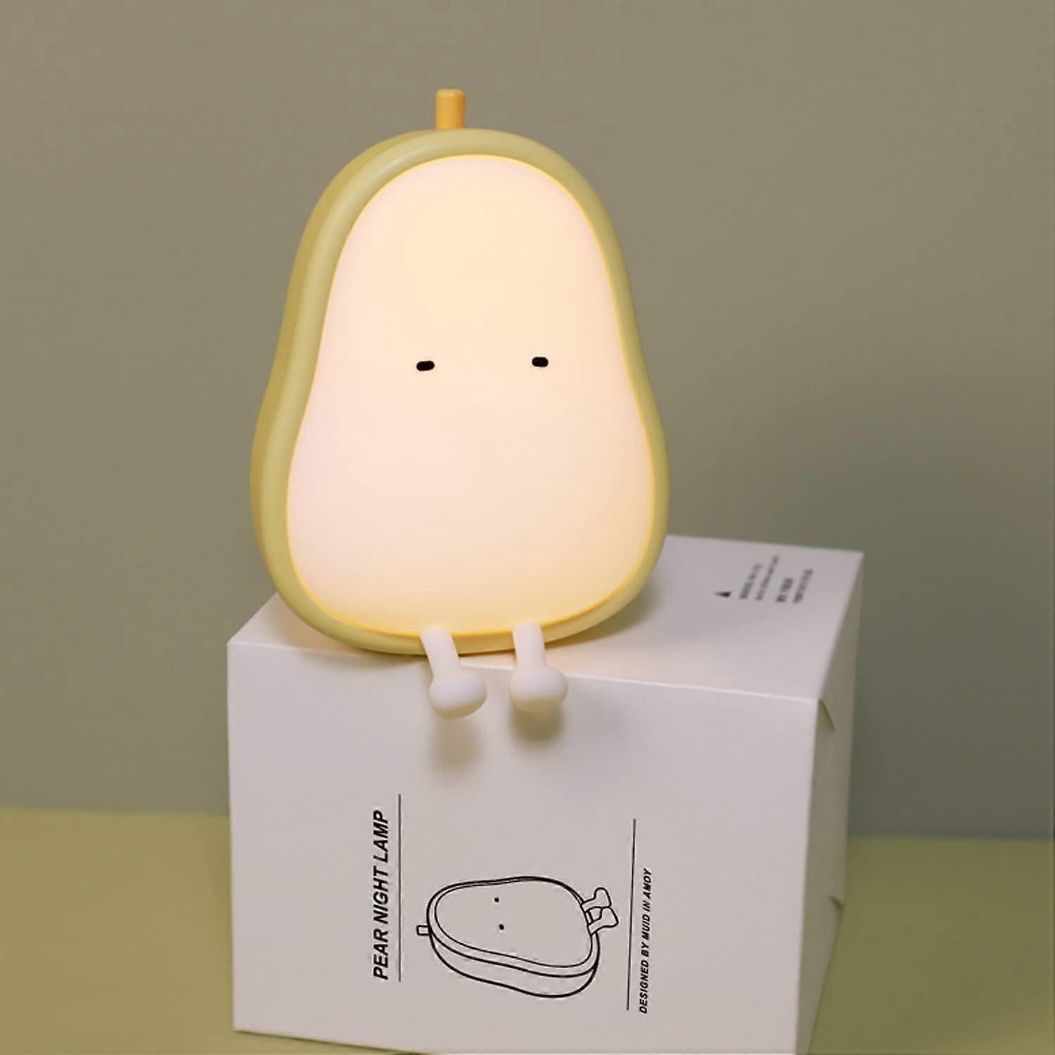 LINLIN Cute Dimmable LED Pear Night Light, Rechargeable BPA-Free ABS+Silicone Bedside Lamp, Portable for Bedroom, Desk Decor, Kids