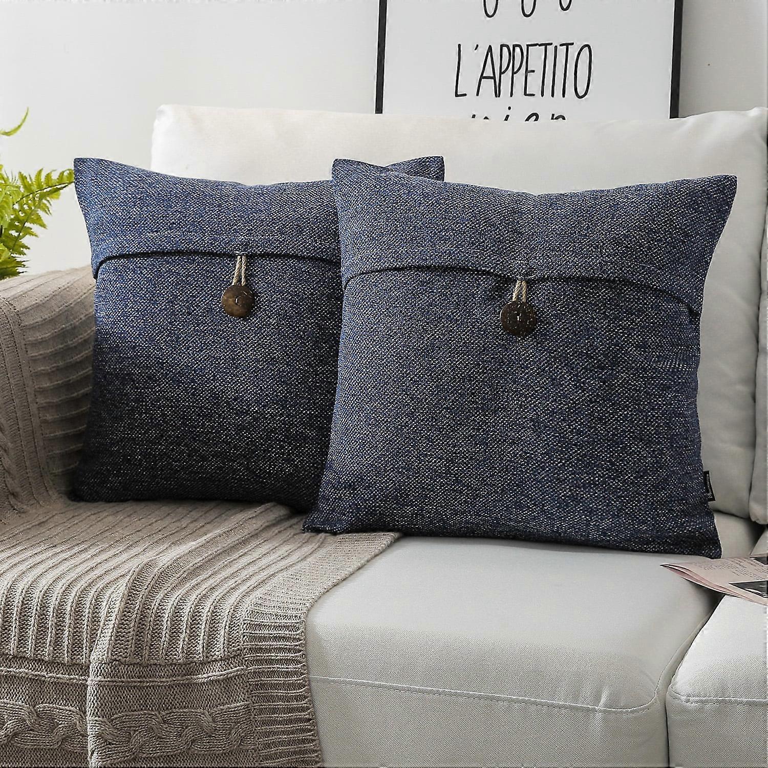Holiday Deal Selection Phantoscope Single Button Cotton Blend Decorative Throw Pillow Cover, 22" x 22", Navy, 2 Pack