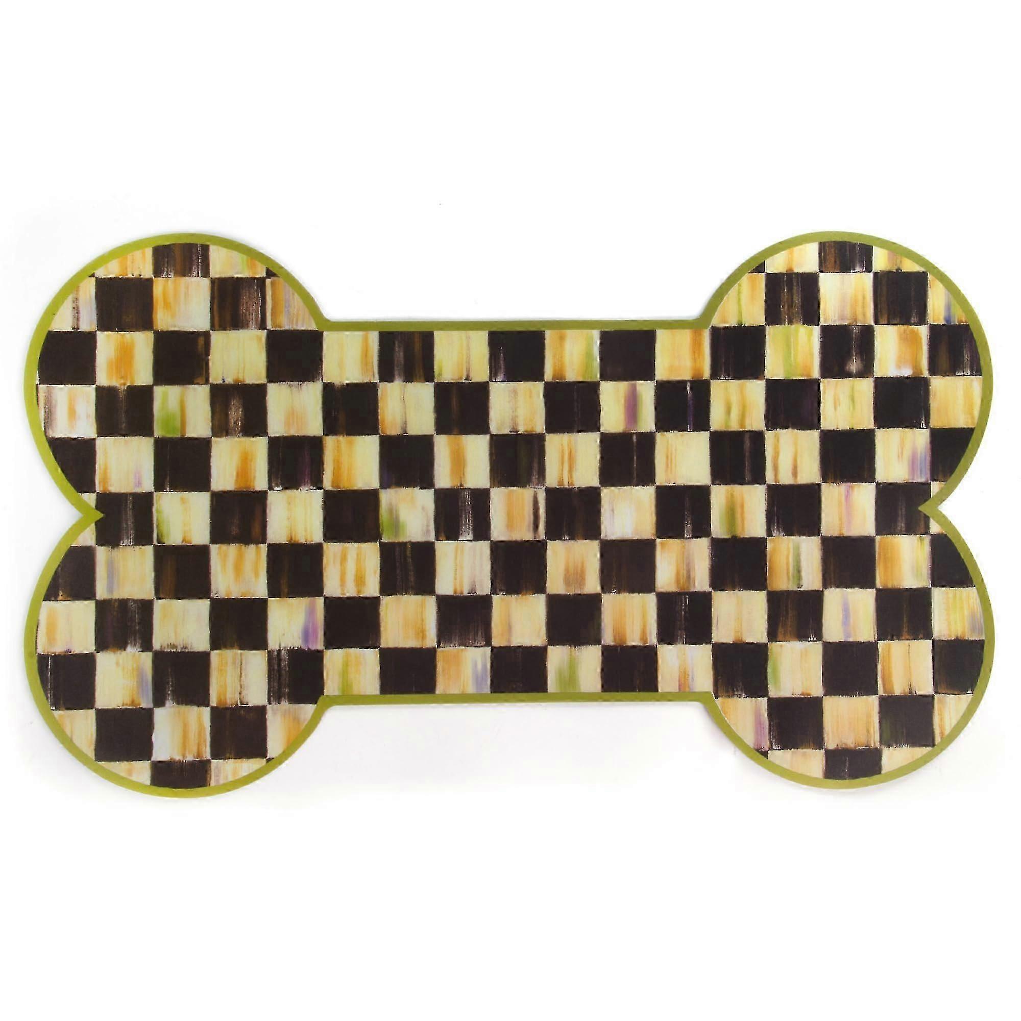 Pup Placemat For Dogs And Cats, Black And White Courtly Check Pet Food Mat, Machine Washable, Stylish Design