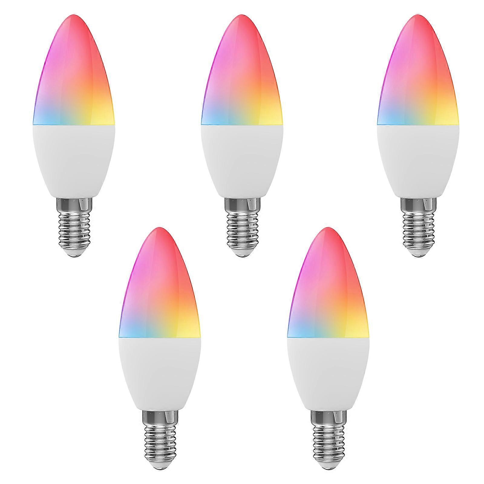WiFi Smart Bulb RGB+W+C LED Candle Bulb 5W E14 Dimmable Light Phone APP SmartLife/Tuya Remote Control Compatible with Home for Voice Control, 5 pack