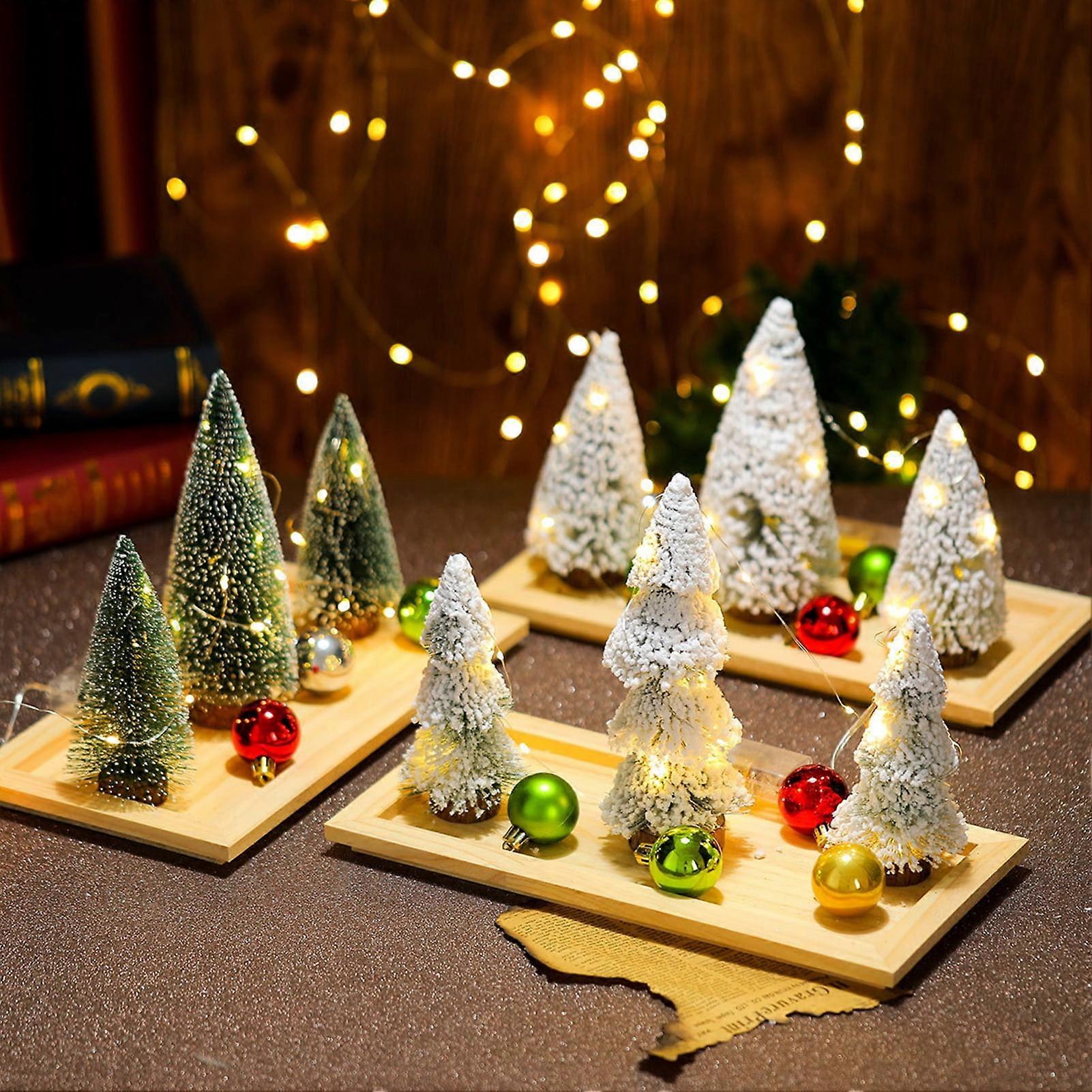 SUSUchens 3Pcs Mini Christmas Tree with LED Lights, Flocked Pine Trees on Wooden Base, Desktop Ornament for Holiday Decor