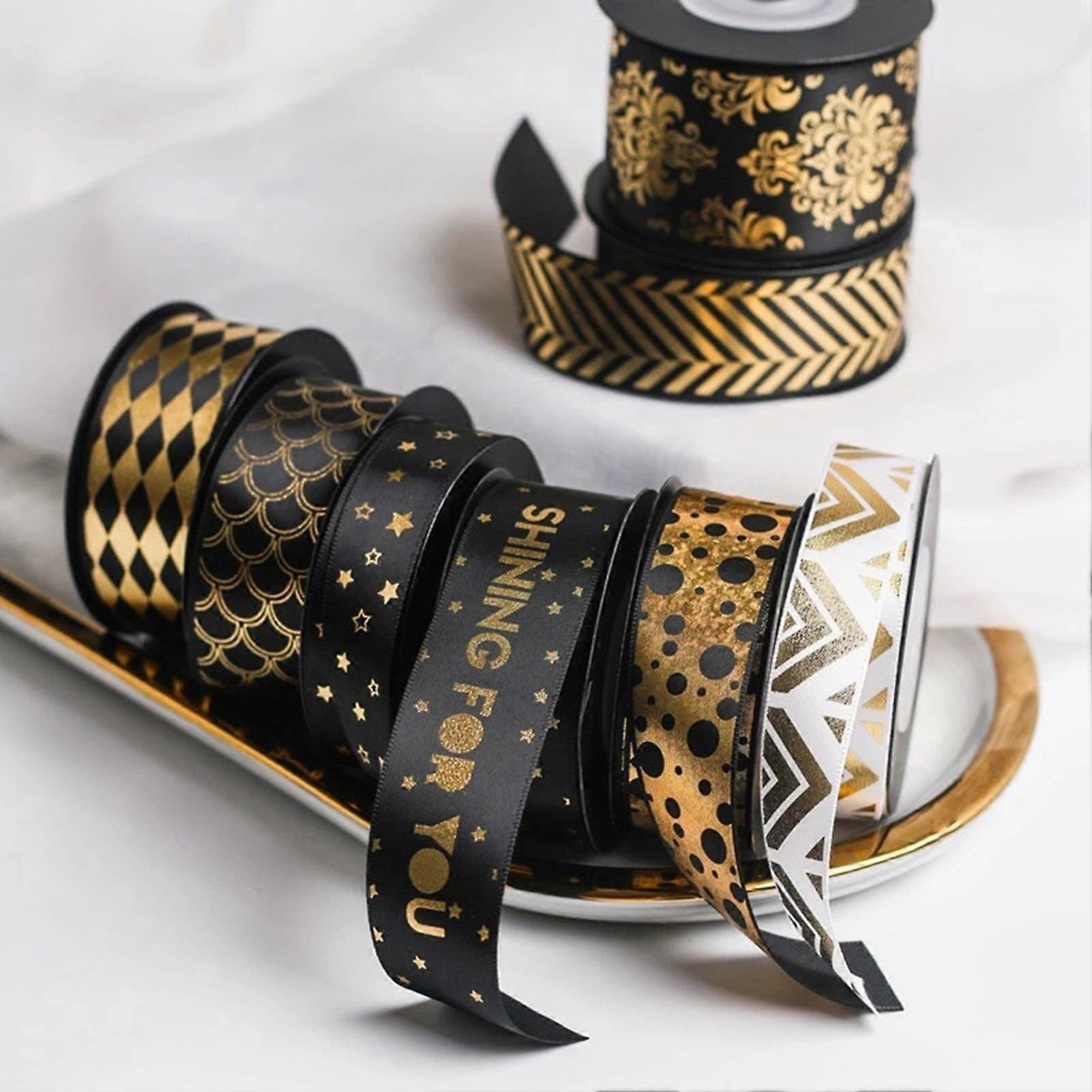 SUSUchens 1 Roll Creative Hot Stamping Ribbon Decor DIY Handmade Polyester Gift Ribbon for Party Style 7