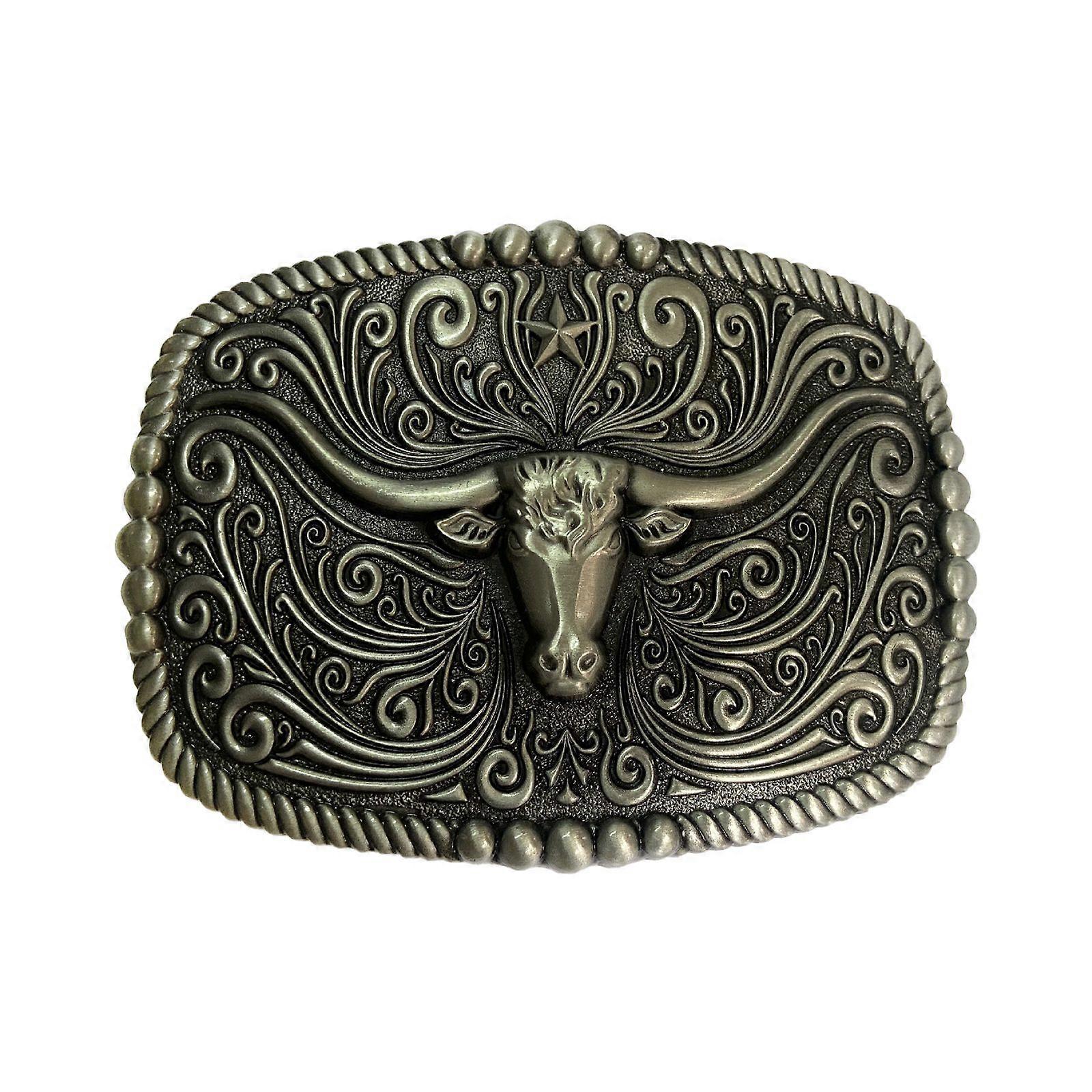 Vintage Longhorn Bull Head Belt Buckle, Zinc Alloy Western Cowboy Style