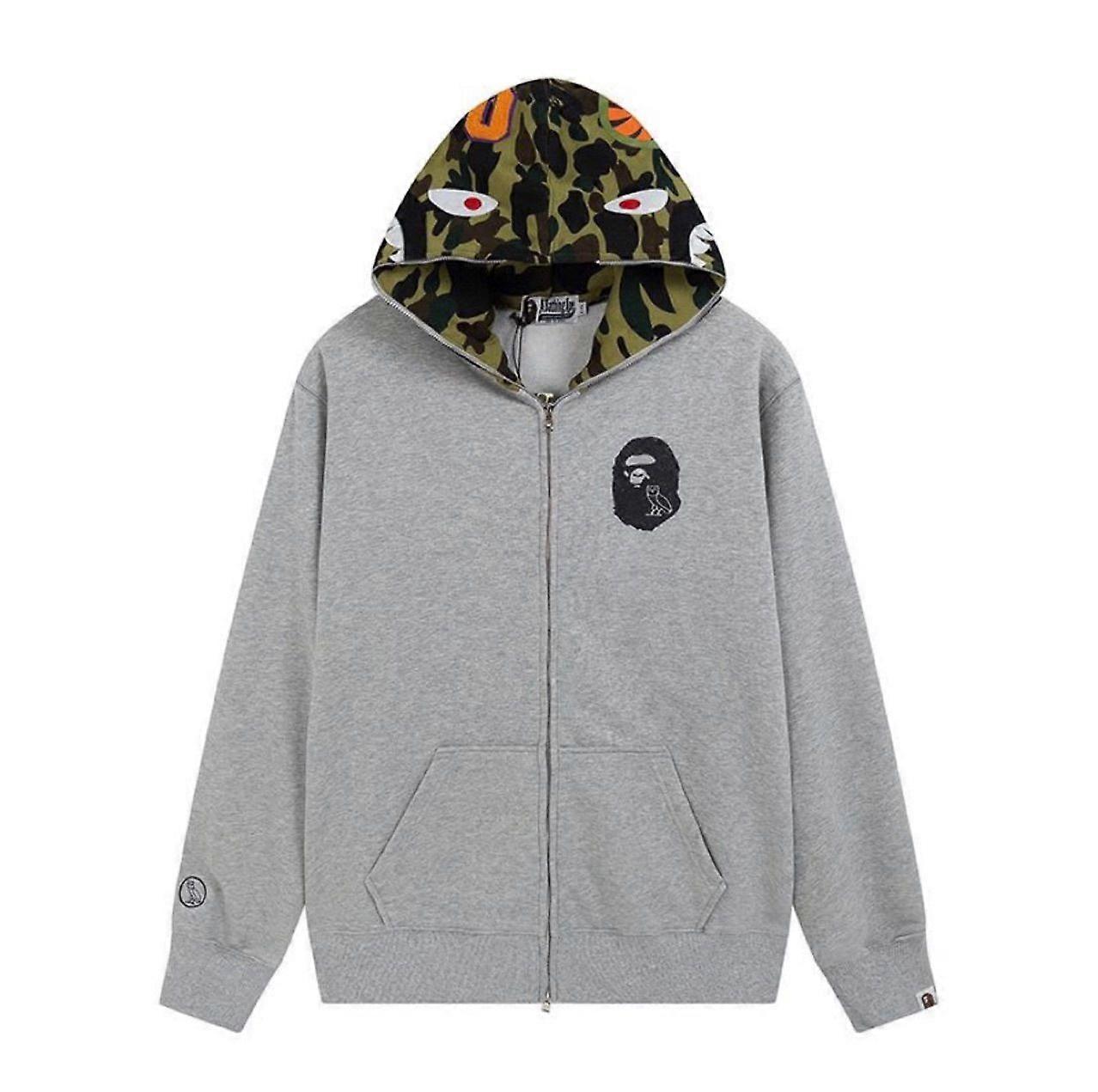 Shark Embroidery Camouflage Hooded Zip-Up Sweatshirt Unisex Short Sleeve Jacket