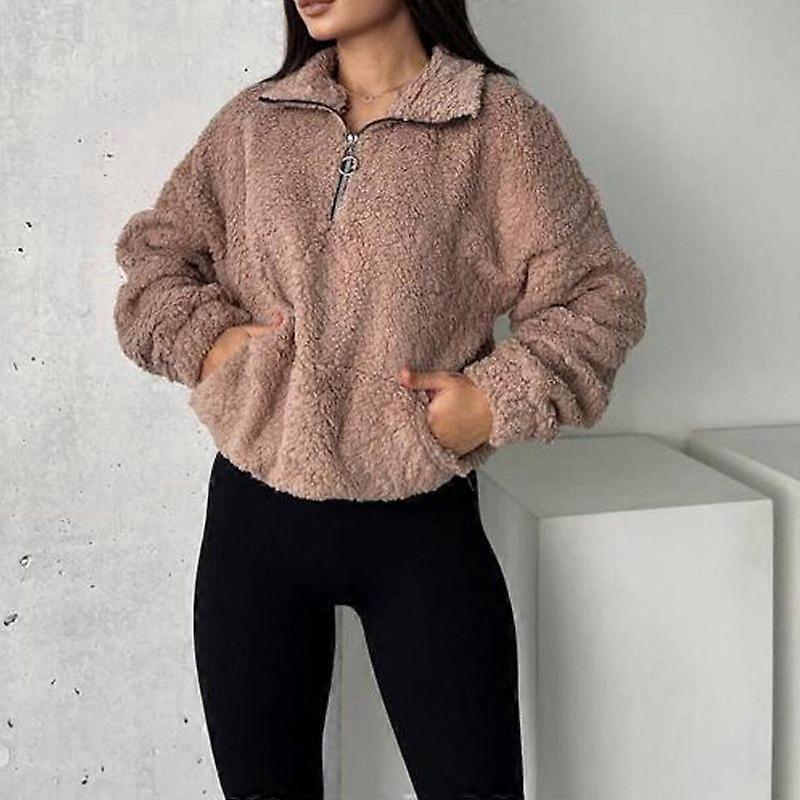 Women's Fleece Half Zip Hoodie Autumn Winter Pullover Casual Loose Fit Jacket