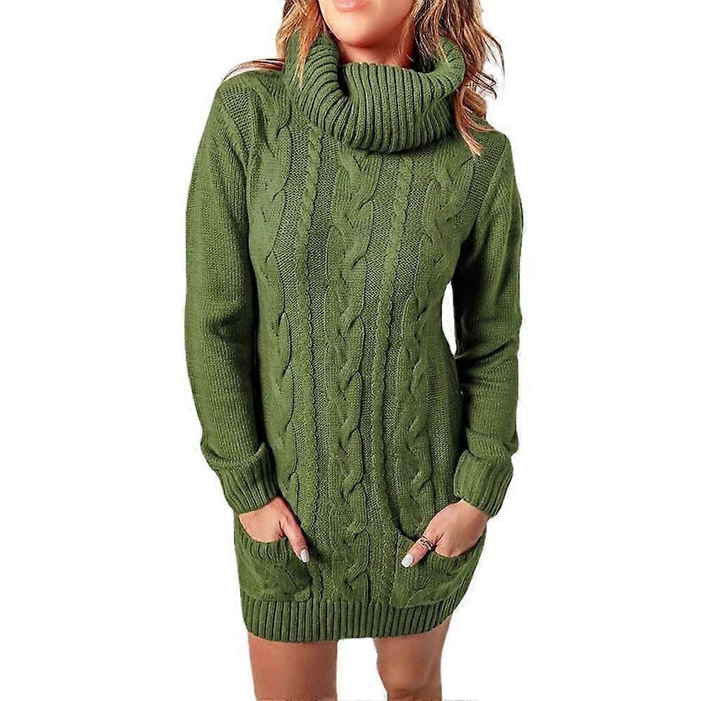 Turtleneck Round Neck Knit Sweater Dress Mid-Length 65cm Slim Fit