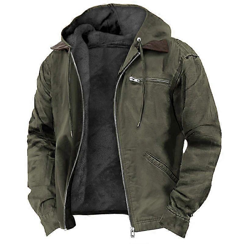 Solid Color Hooded Cotton Jacket Men's Fleece Lined Coat Casual Warm Zipper Pockets