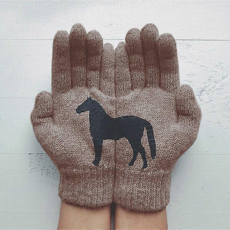 Women's Knitted Gloves Outdoor Warm Thermal Black Horse Print Fun Finger Gloves