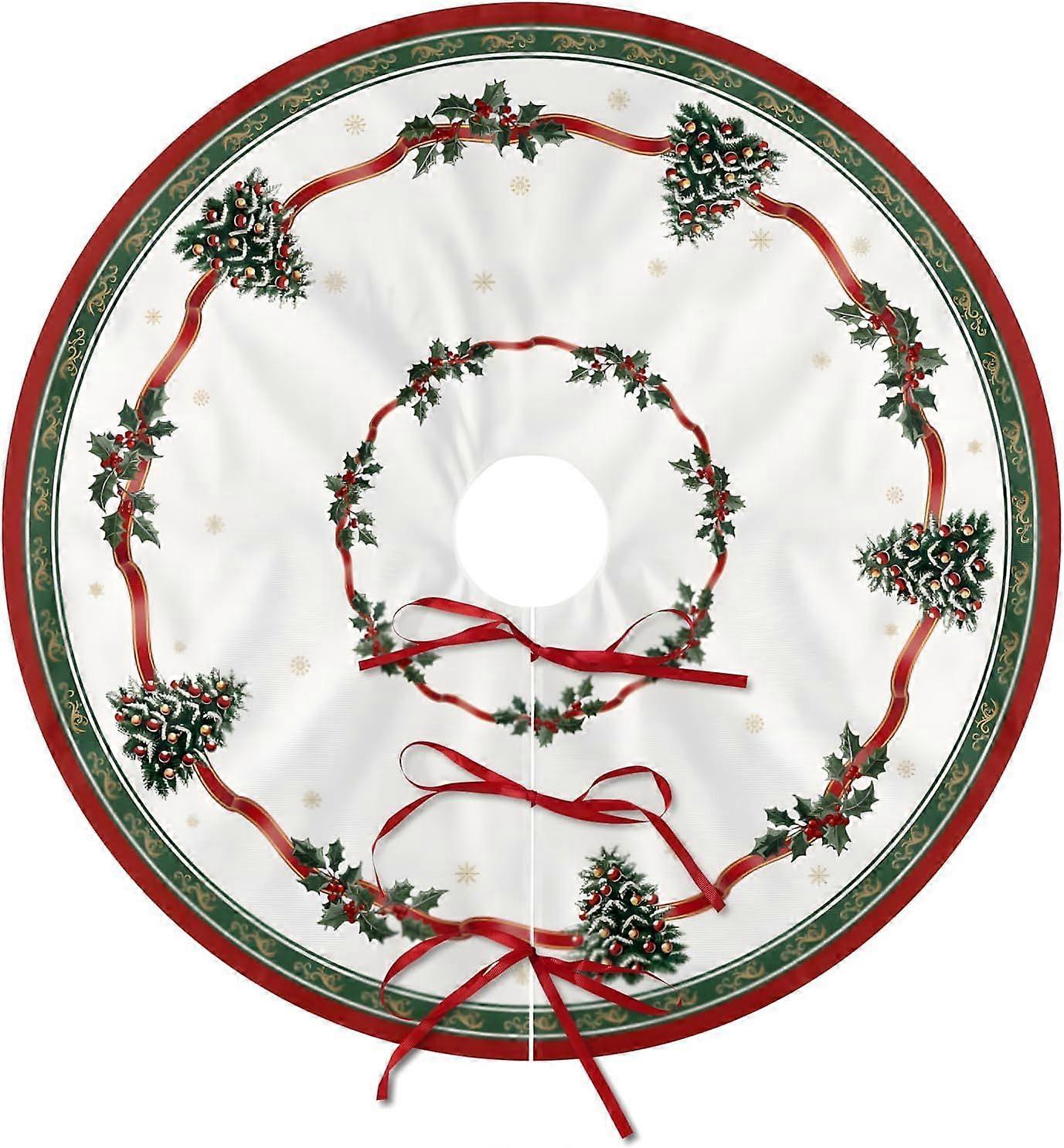 Christmas Tree Skirt Christmas Tree Pattern Tree Skirts White and Green Xmas Tree Base Cover Mat for Party Occasion Decor Supplies Xmas New Year Home