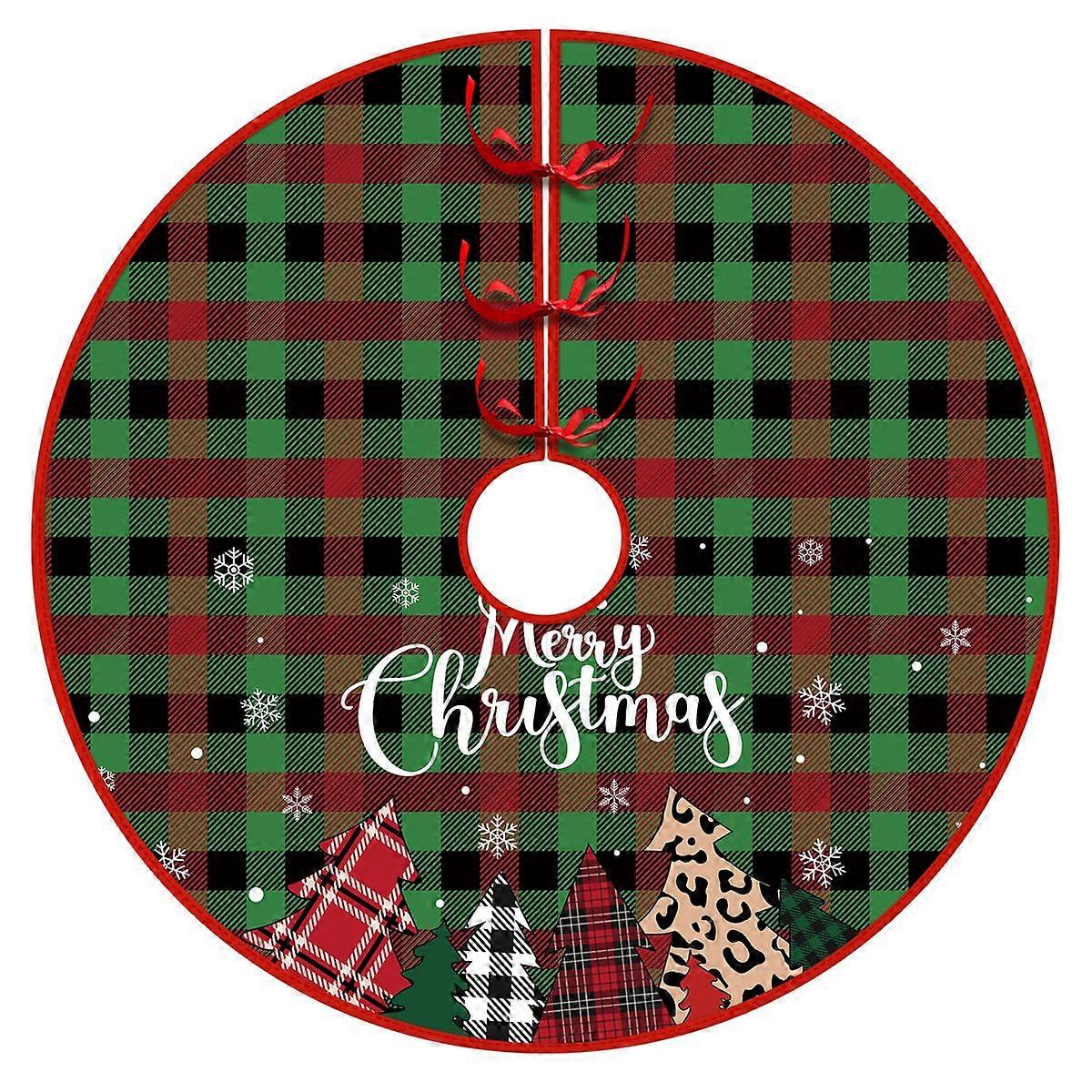 Christmas Tree Skirt Buffalo Plaid Check Xmas Tree Decoration Merry Christmas Tree Skirt Mat Decor for Winter Holiday Party Christmas Decoration