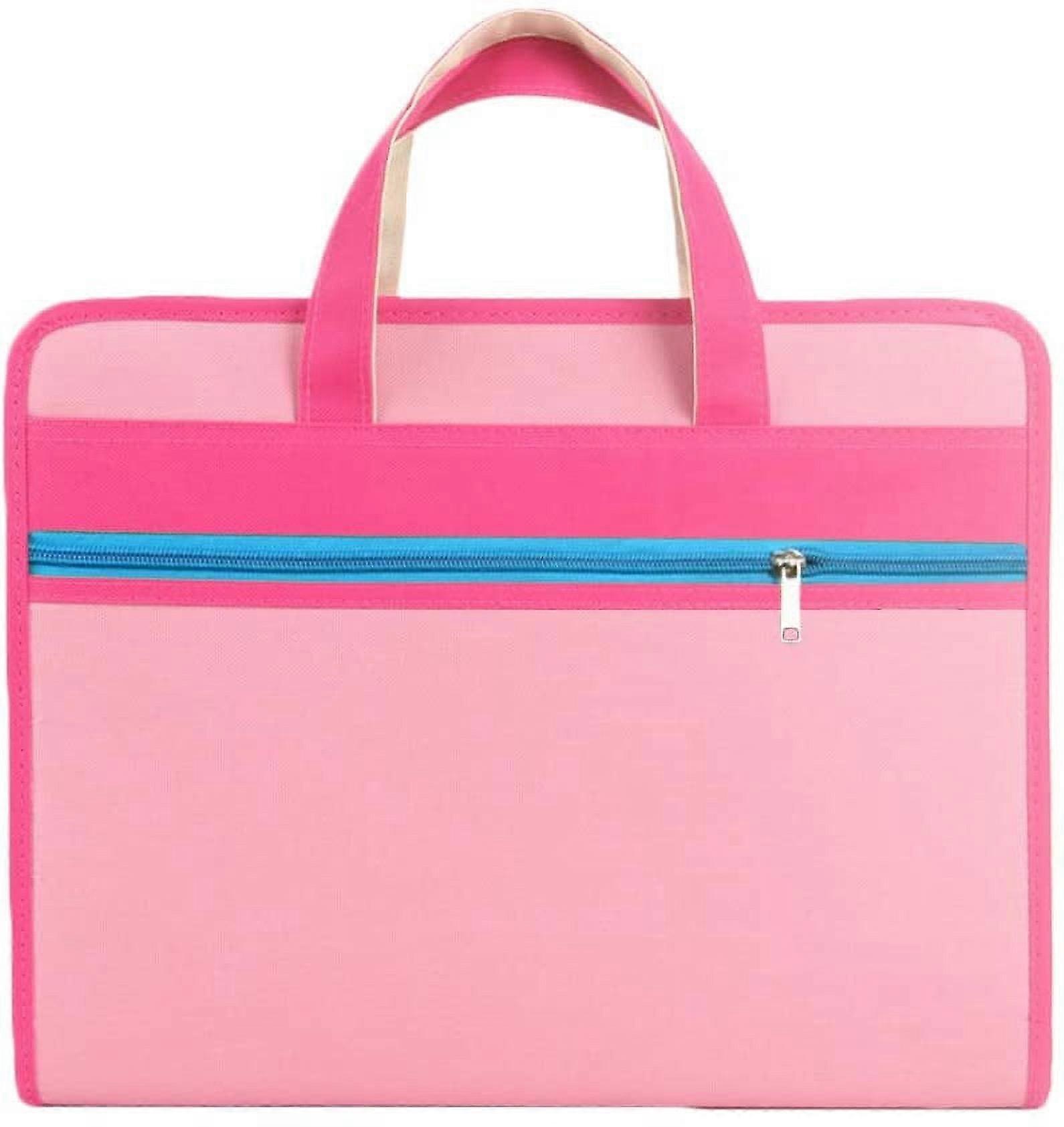 Portable 13-Pocket Expandable Canvas A4 File Folder, Assorted Label Colors, Zipper Closure, Handles, Pink – Business Accordion Document Organizer