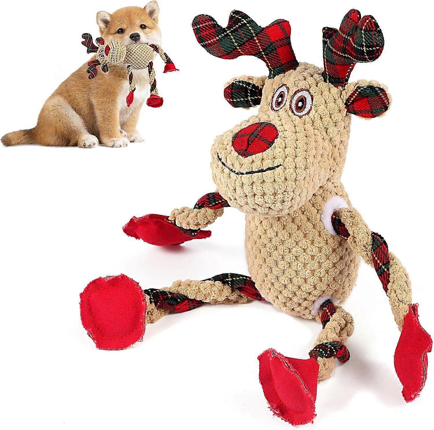 Christmas Dog Toys, Squeaky Dog Toy for Large Dogs, Cute Elk Plush Dog Toys with Crinkle Paper, Dog Chew Toys for Small Medium Breed
