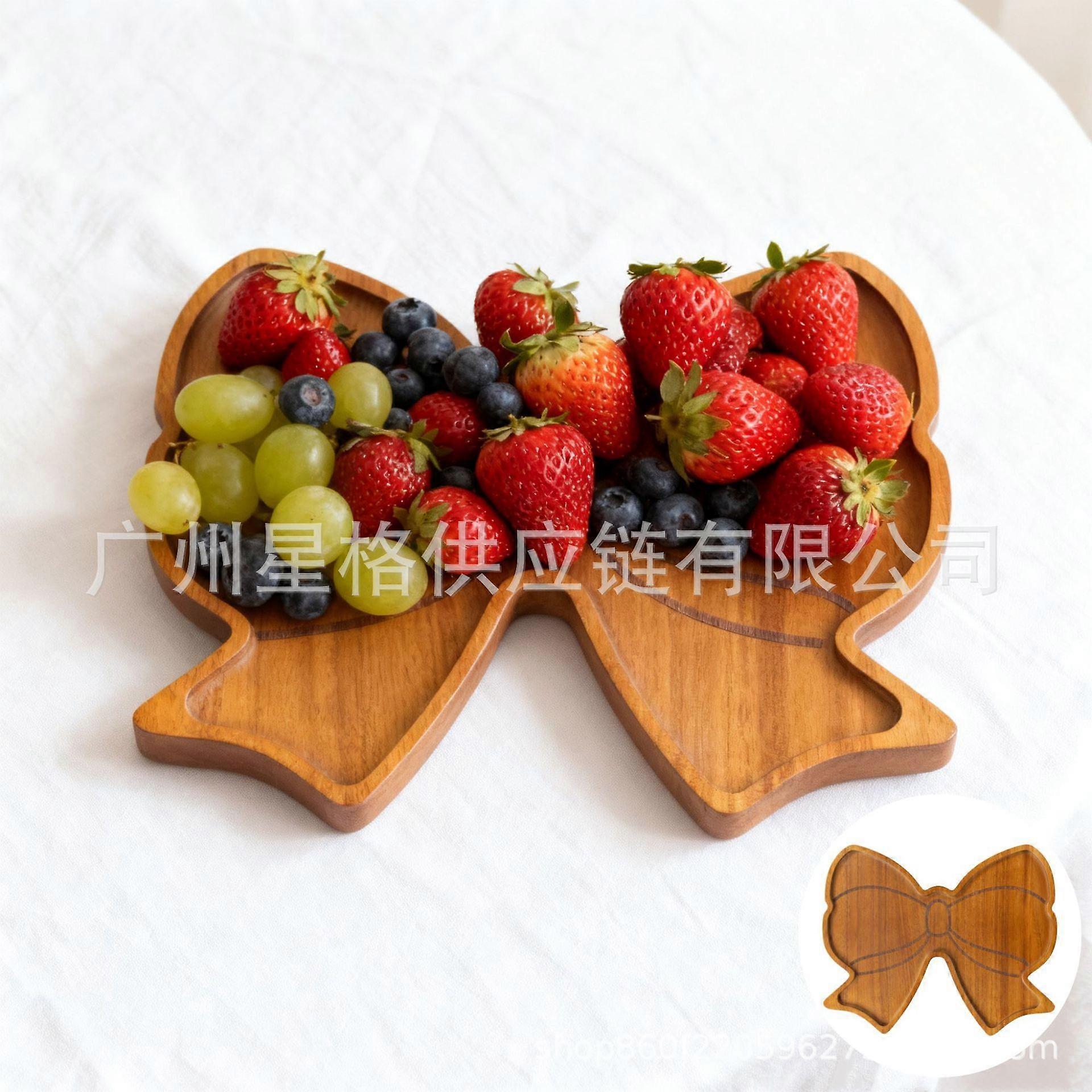 Bow Charcuterie Board, Christmas Wood Serving Tray Bow Shaped Wooden Platter Food Dish Plate Table Serving Platter for Christmas Charcuterie Cheese