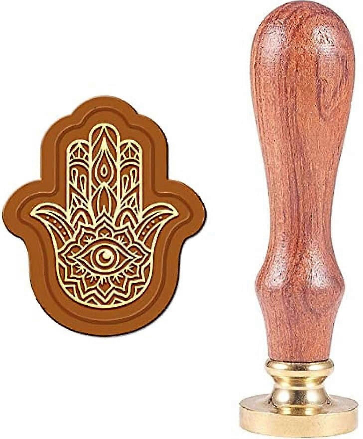 1Set Brass Sealing Wax Seal Stamp Wood Handle Palm Pattern for Wedding Invitations Christmas Gift Packing