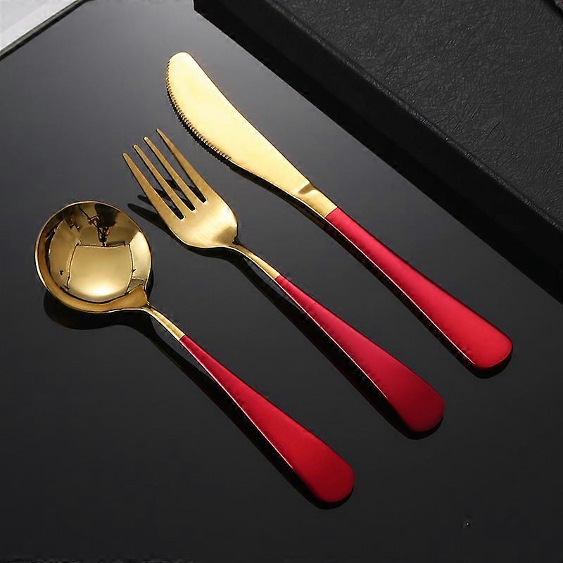 Internet celebrity knife, fork and spoon - red 304 Internet celebrity spoon stainless steel tableware knife, fork and spoon hotel western steak knife