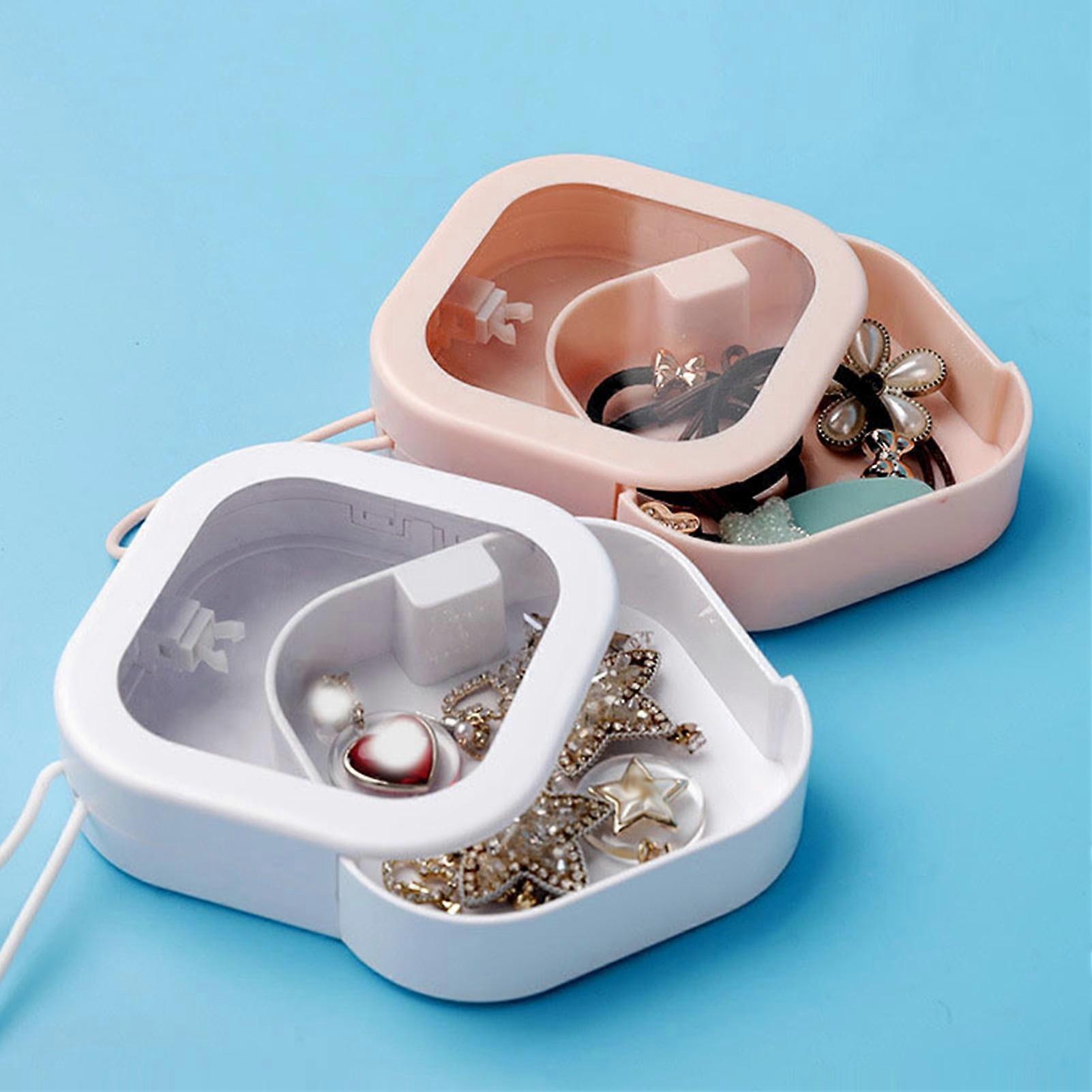 SUSUchens Rotating Jewelry Box with Transparent Window, Portable Hair Tie & Cotton Swab Organizer, Travel Accessory Dispenser, White, Compatible with