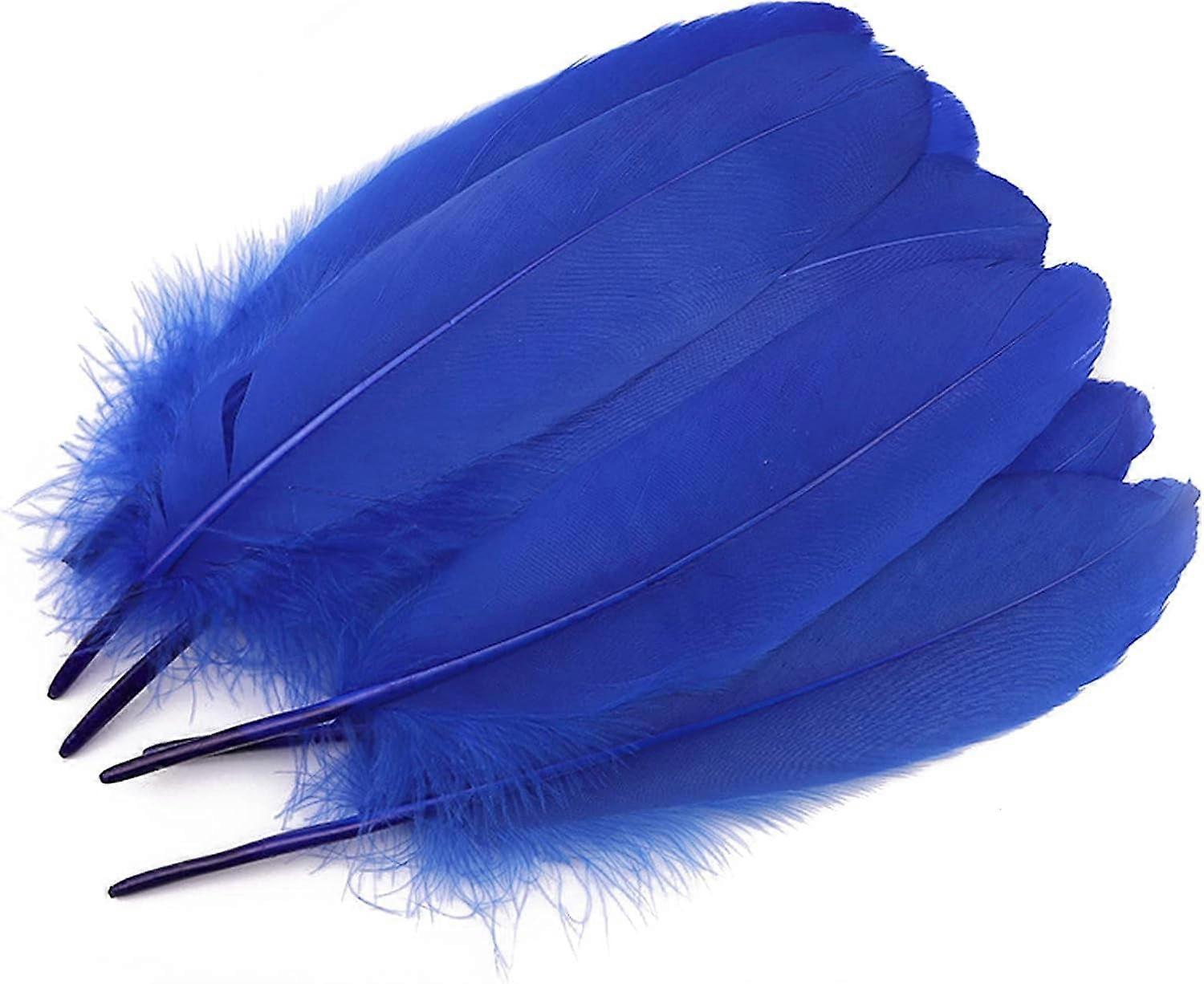 100Pcs 6-8" Multicolor Natural Goose Feathers for DIY, Halloween Decor, Cosplay, Crafts & Hats (Royal Blue)