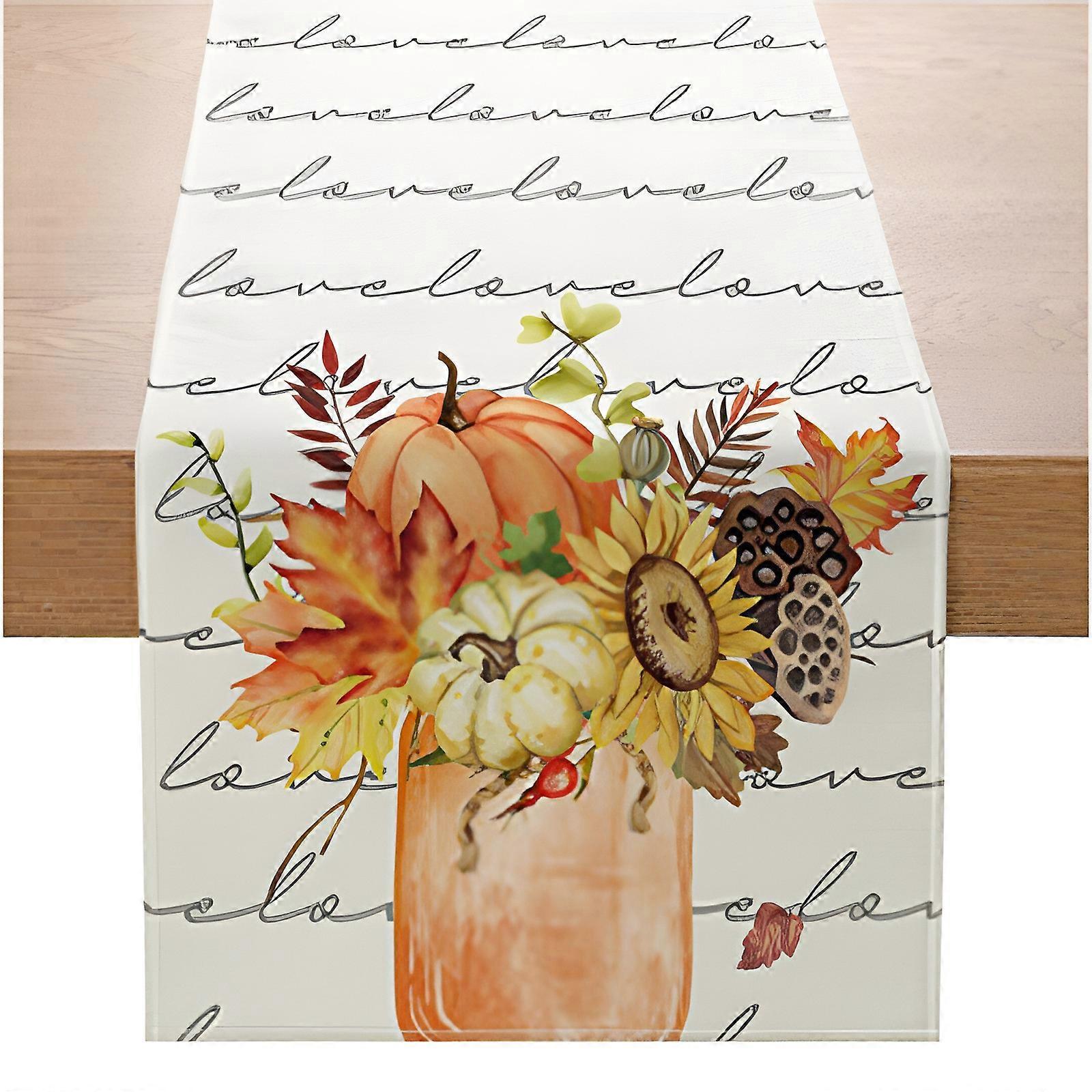 Thanksgiving Table Runner,Hot Selling Thanksgiving Pumpkin Table Flag Living Room Table Decoration Linen Material Table Flag