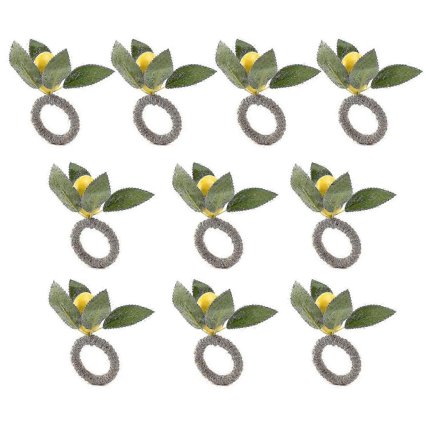 Napkin Rings, 10pcs Handmade Yellow Faux Lemon with Vine for Wedding, Serviette, Dining Table Decor
