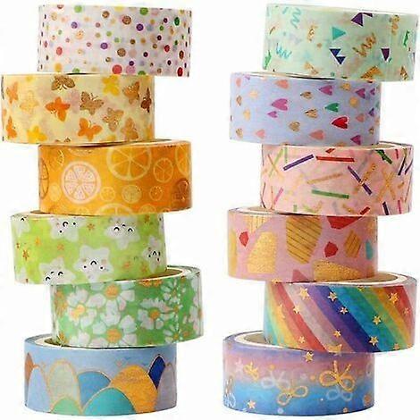 - Pack of 12 rolls of washi adhesive tape - Decorative - gold leaf pattern,