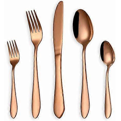 Glossy Black Cutlery Set, 5 Piece Stainless Steel Fork Spoon Set for 6 People