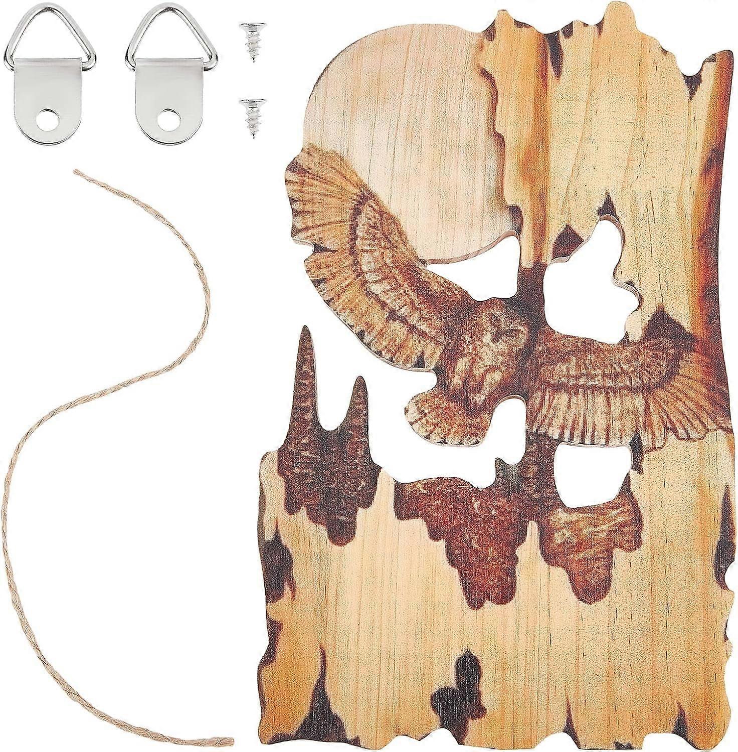 Owl Wooden Carved Wall Hanging Sign, Rustic Farmhouse Decor, Wood Art Plaque Statue Ornament Gift for Christmas Birthday (7.63 x 4.8in)