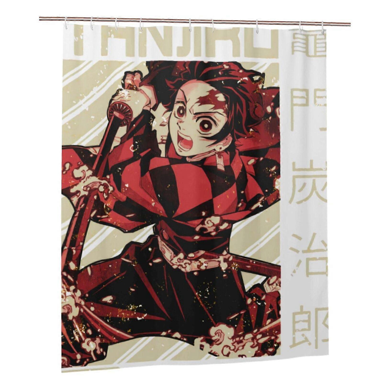 Kimetsu No Yaiba Shower Curtain Set with Hooks, 66x72in Waterproof Polyester, Machine Washable, Easy Care Bathroom Tub Decor