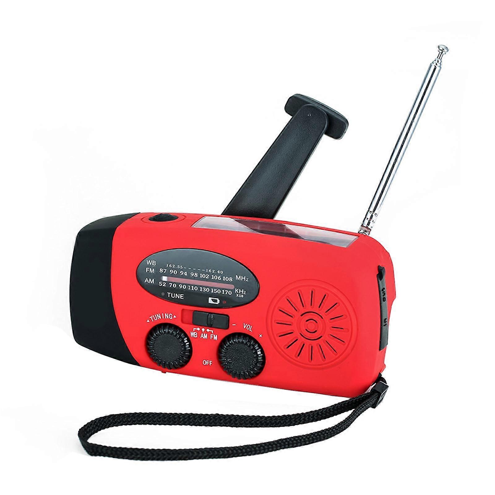 Emergency Hand Crank Self Powered Solar Weather Radio with LED Flashlight, Radio