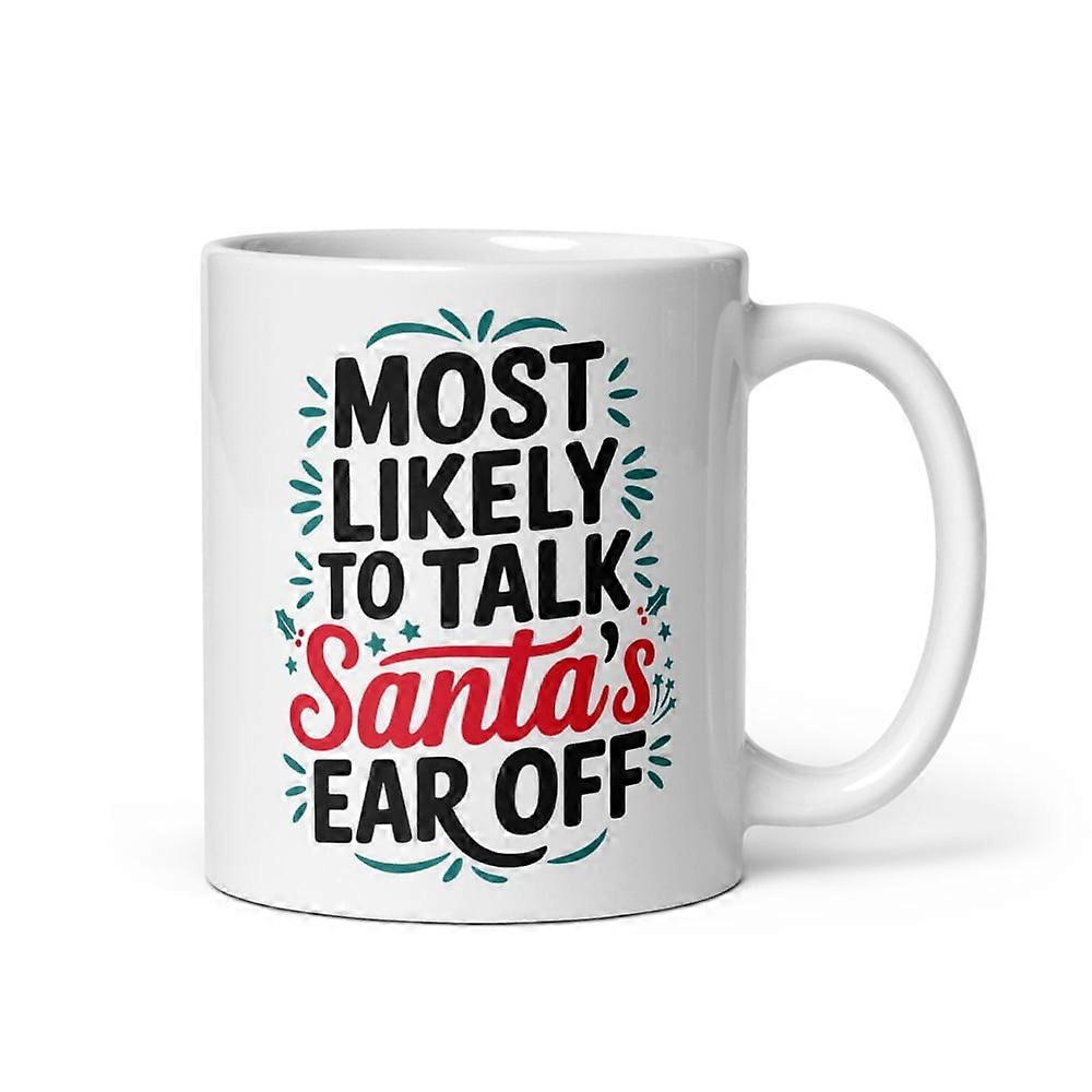 Family Matching Xmas White Glossy Mug, Most Likely To Talk Santa's Ear Off Christmas Present (11 oz)