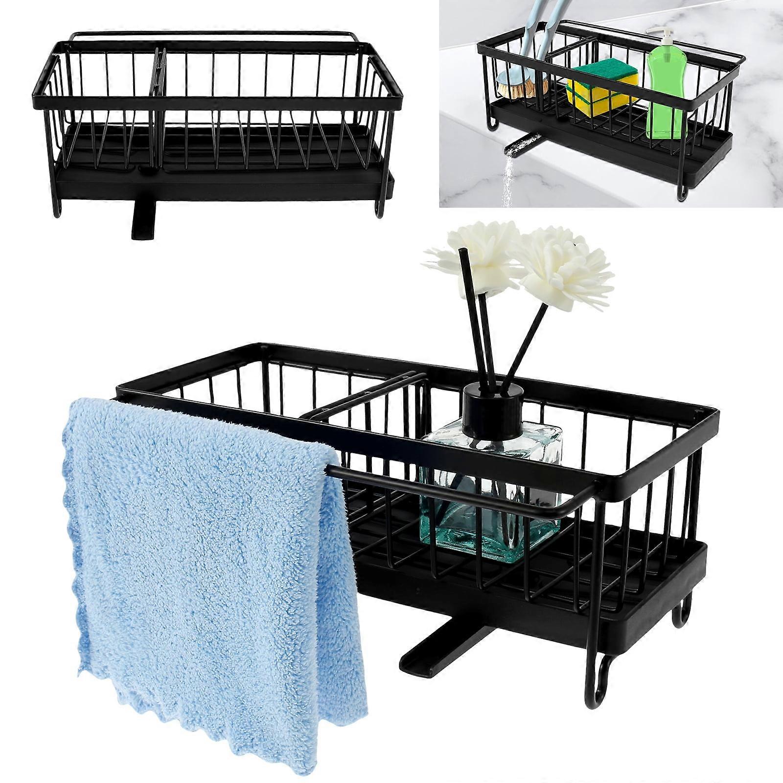 Stainless Steel Kitchen Sink Caddy Organizer with Towel Holder & Rotating Drain Tray, Rustproof Sponge Rack – Compatible with FUYGRCJ