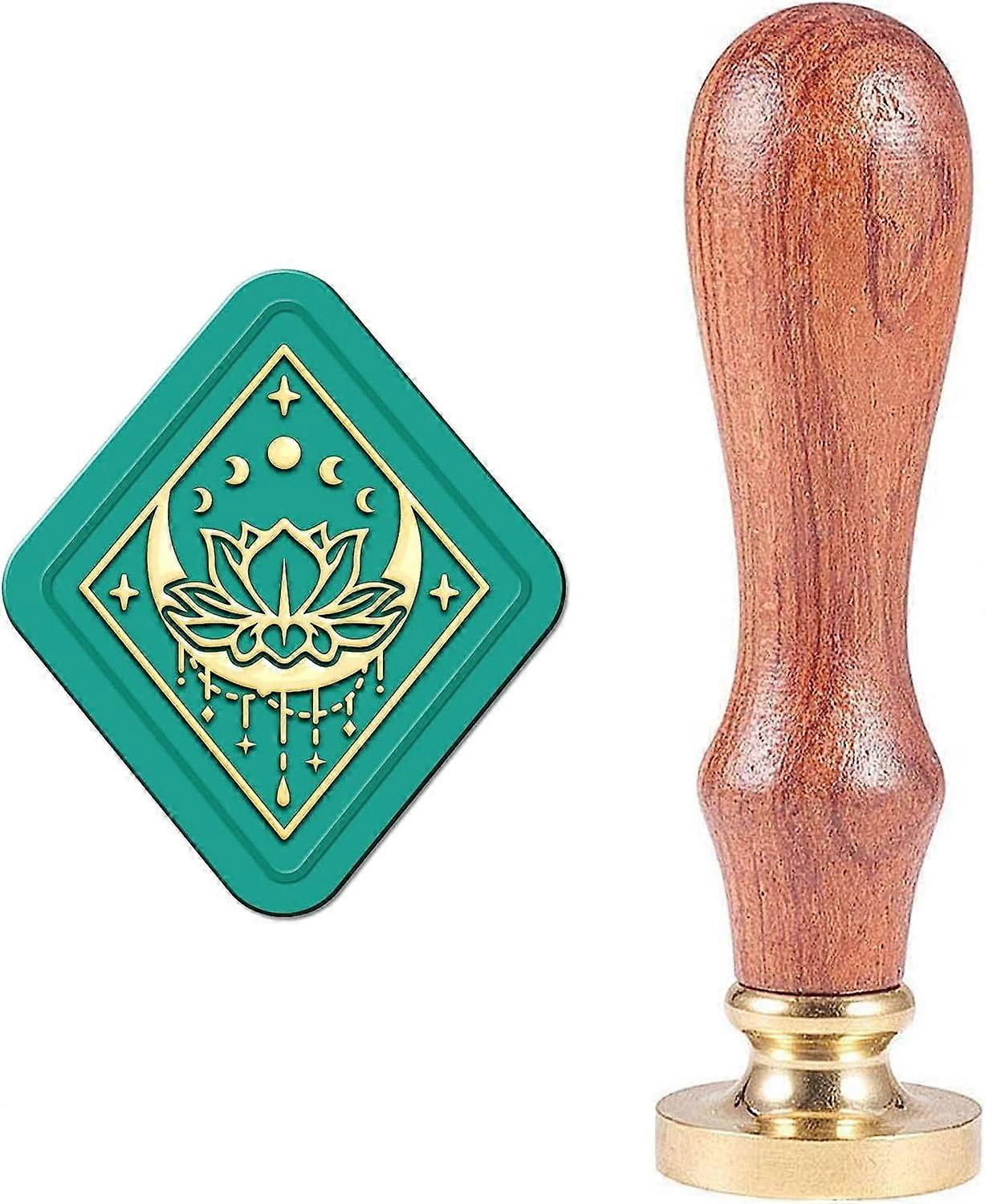 Lotus Wax Seal Stamp with Moon & Star Design, Tassel, Vintage Brass Head & Wood Handle, Compatible with Wax Melts, for Invitations & Gifts