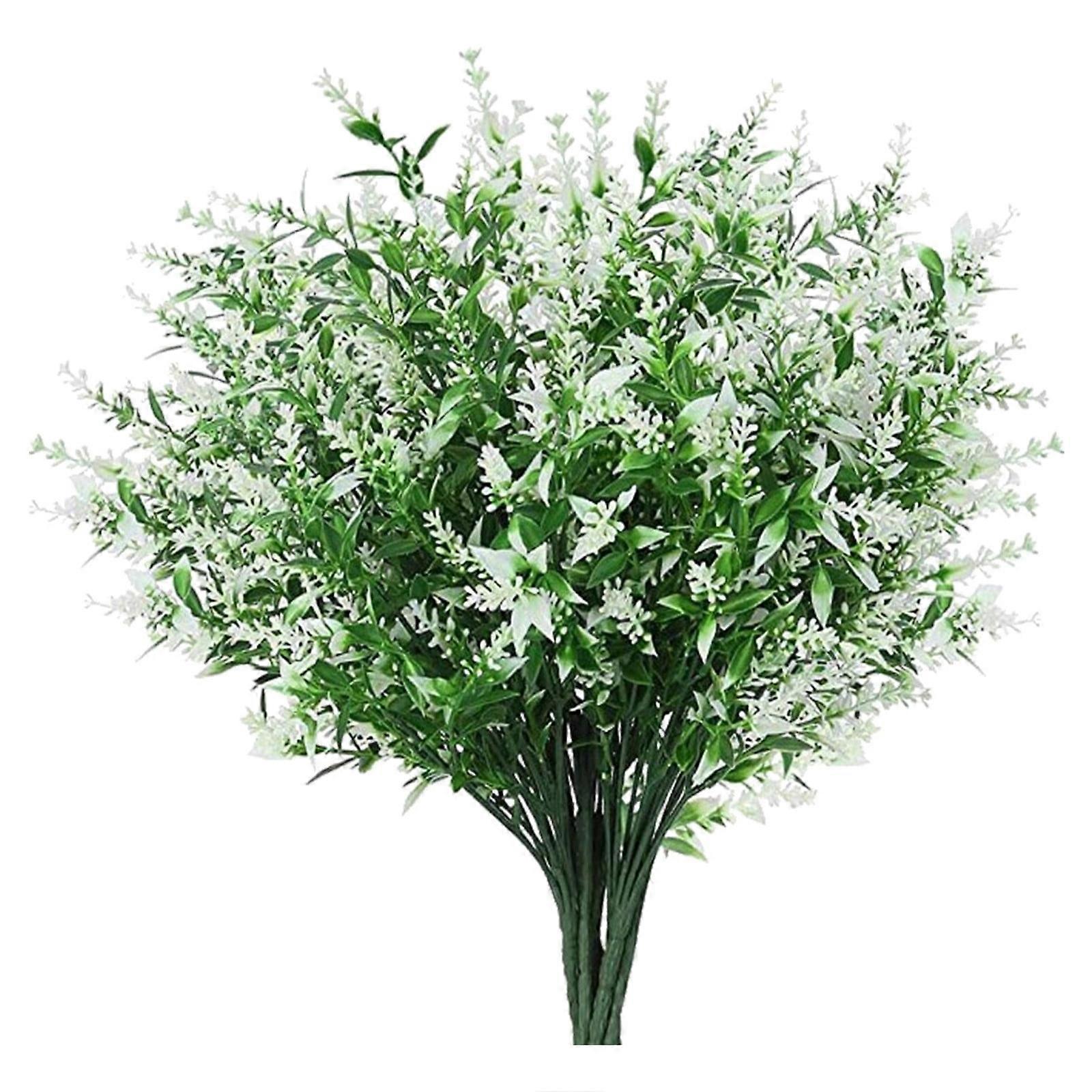 XIUH 12pc Artificial White Lavender Bouquet Set, Simulation Grass for Home Office Desktop Decoration, Wedding Flower Arrangement