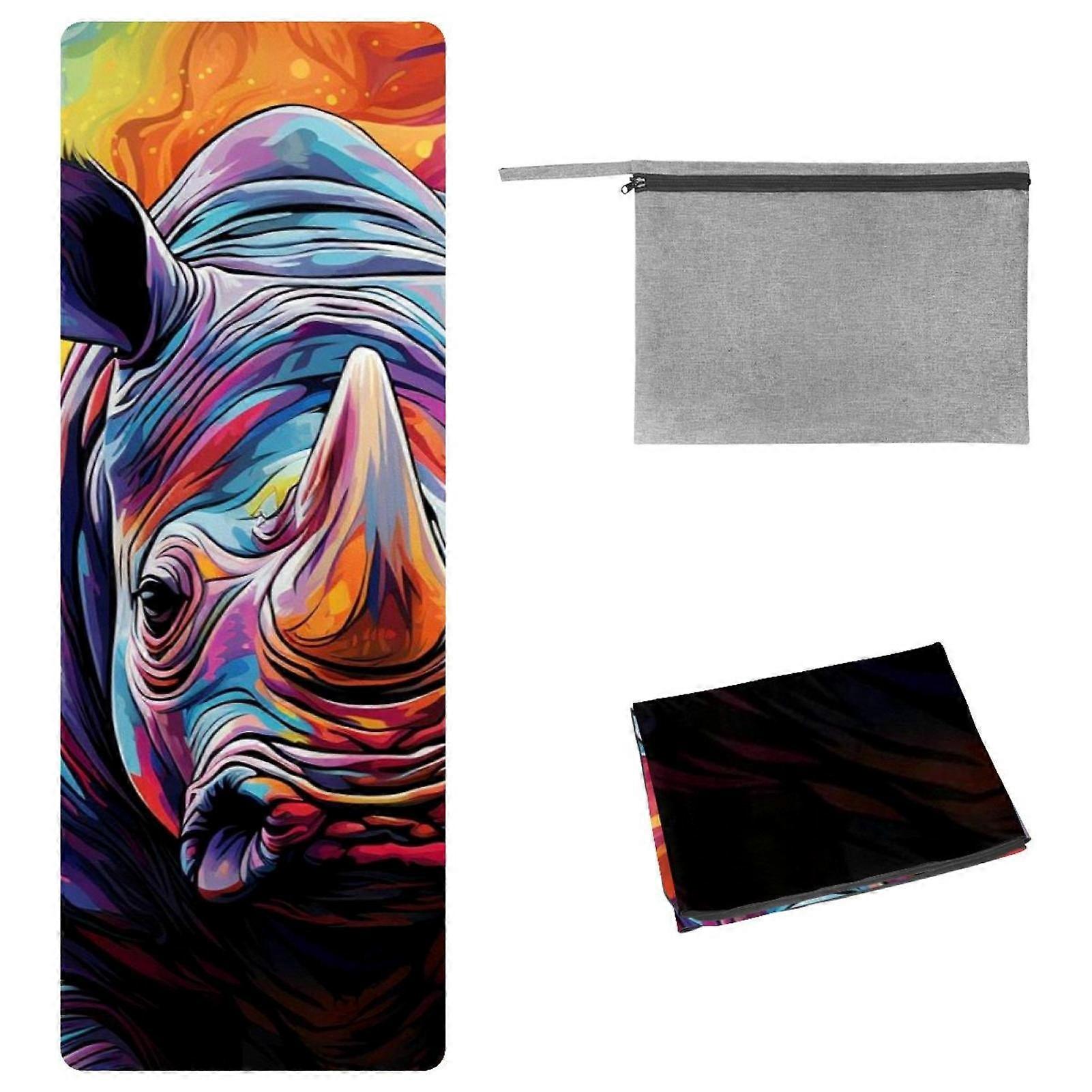 Rhinoceros Yoga Mat Towel with Storage Bag, 72.8"x26.8" - Suitable for Yoga, Pilates, Fitness, Gym Towel, Gym Towels, and Yoga Blanket