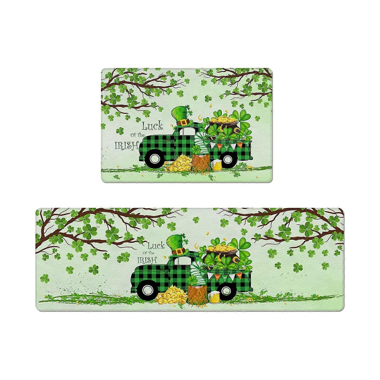 2Pcs St. Patrick's Day Kitchen Rugs Set, Non Slip Waterproof Anti Fatigue Mats, Comfort Standing Mats, compatible with Saint Patricks Day Decor