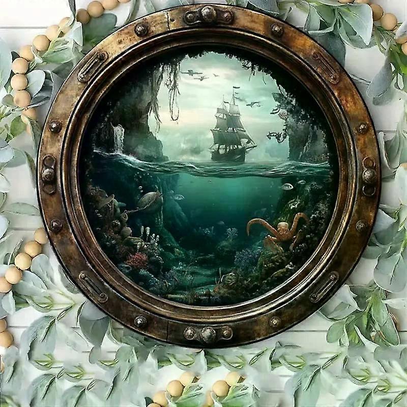1pcs 8in Retro Wooden 2D Flat Round Disc Beach Vacation Style Summer Waves Ocean Seagull Travel Beach Attractions Photo Prop