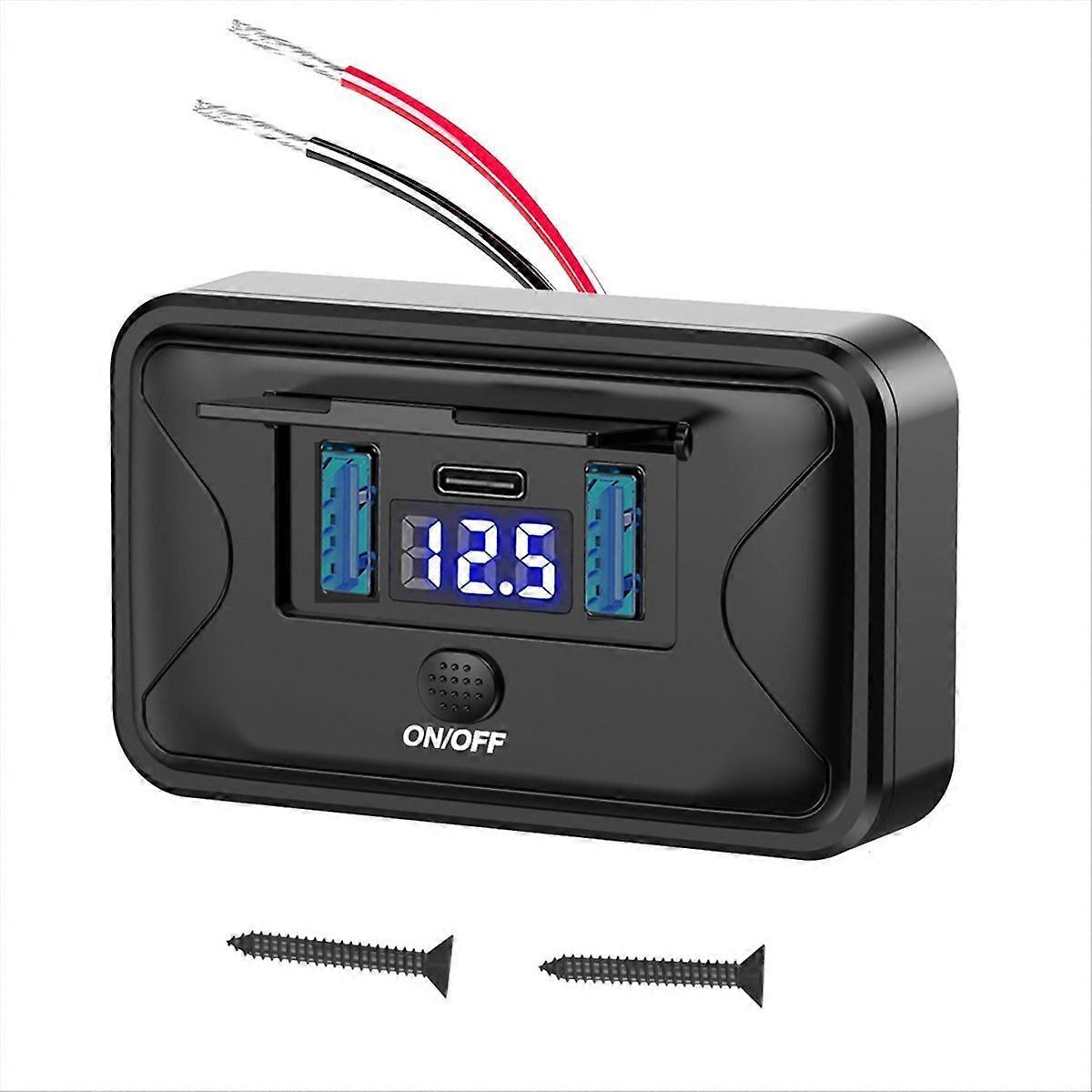 12V-24V RV USB Power Outlet PD3.0 USB C 36W+Dual QC3.0 18W 3Ports Car Charger Socket Accessories for