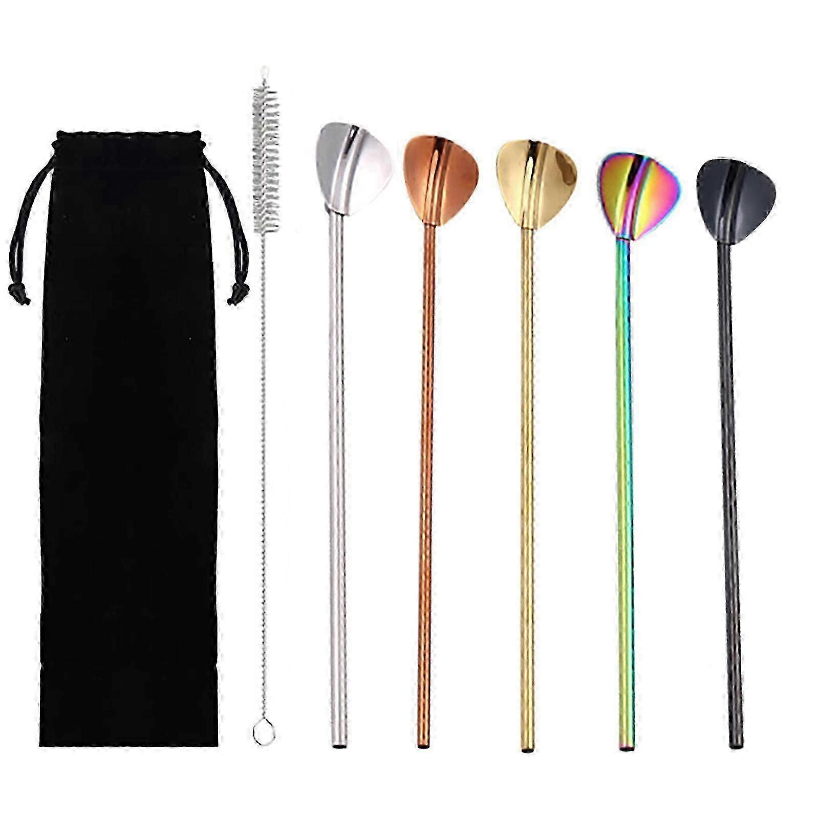 Reusable Stainless Steel Straws with Drinking Spoons & Cleaning Brush in Storage Bag - For All Occasions(New Arrival)