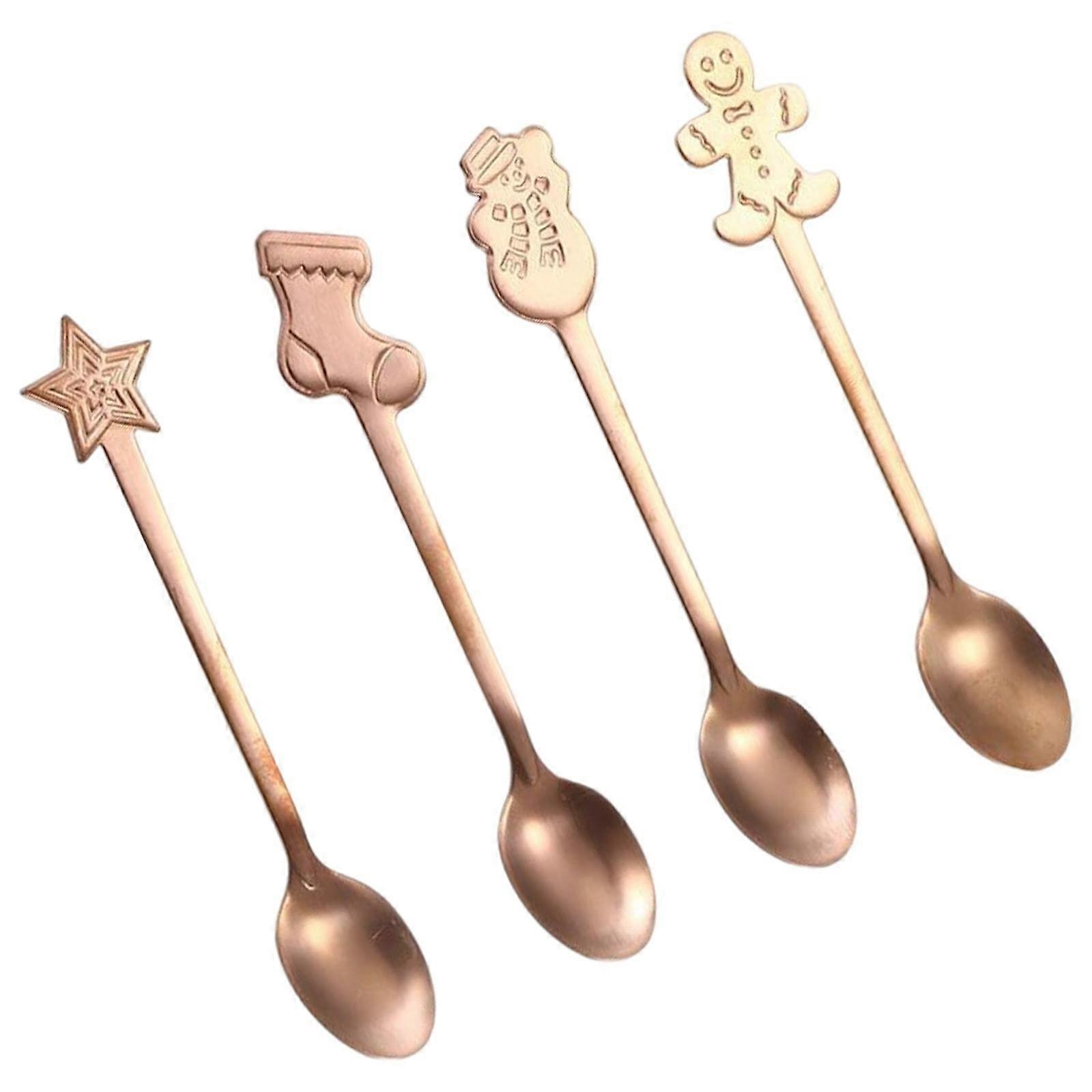 ZENGO 4 Pieces Long Christmas Metal Spoons Set Dessert Spoons for Latte Coffee Macchiato, Rose Aureate