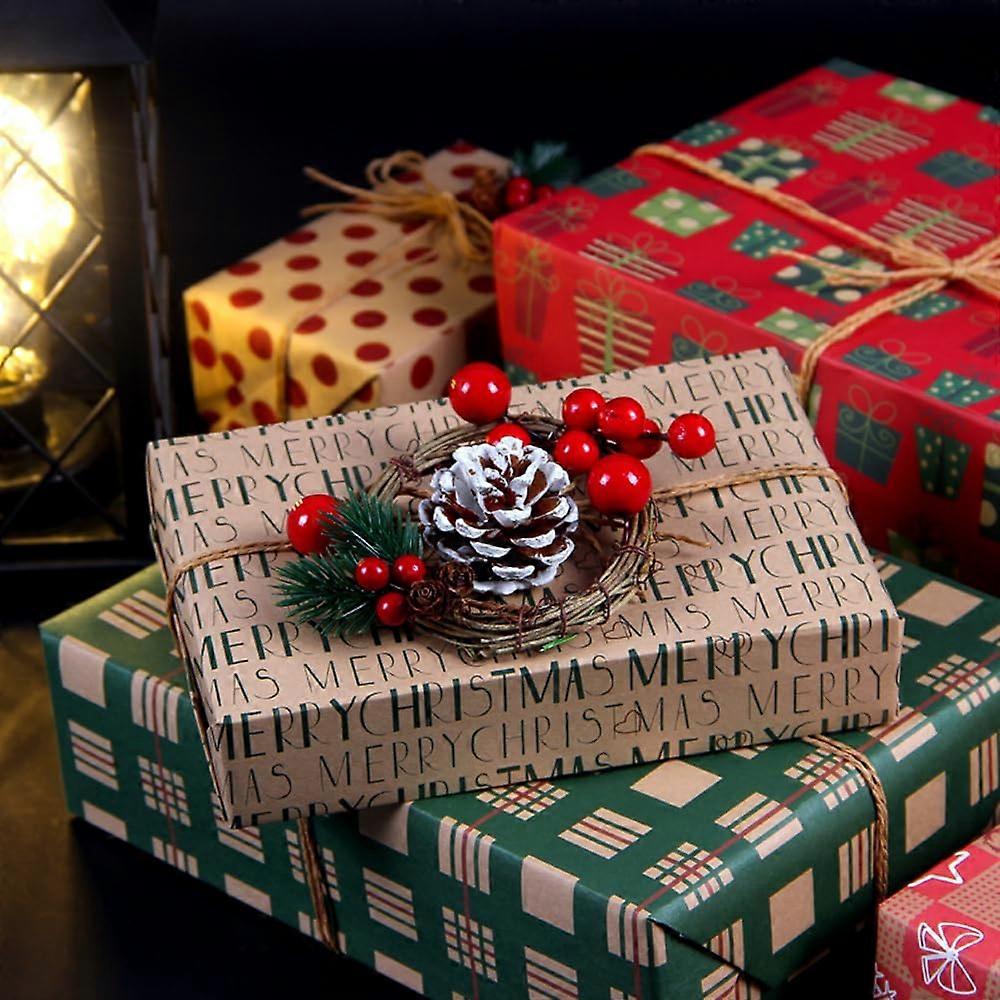 ZENGO Christmas Wrapping Paper Set, 12 Pack 70x50cm Kraft Folded Sheets Recylable Paper