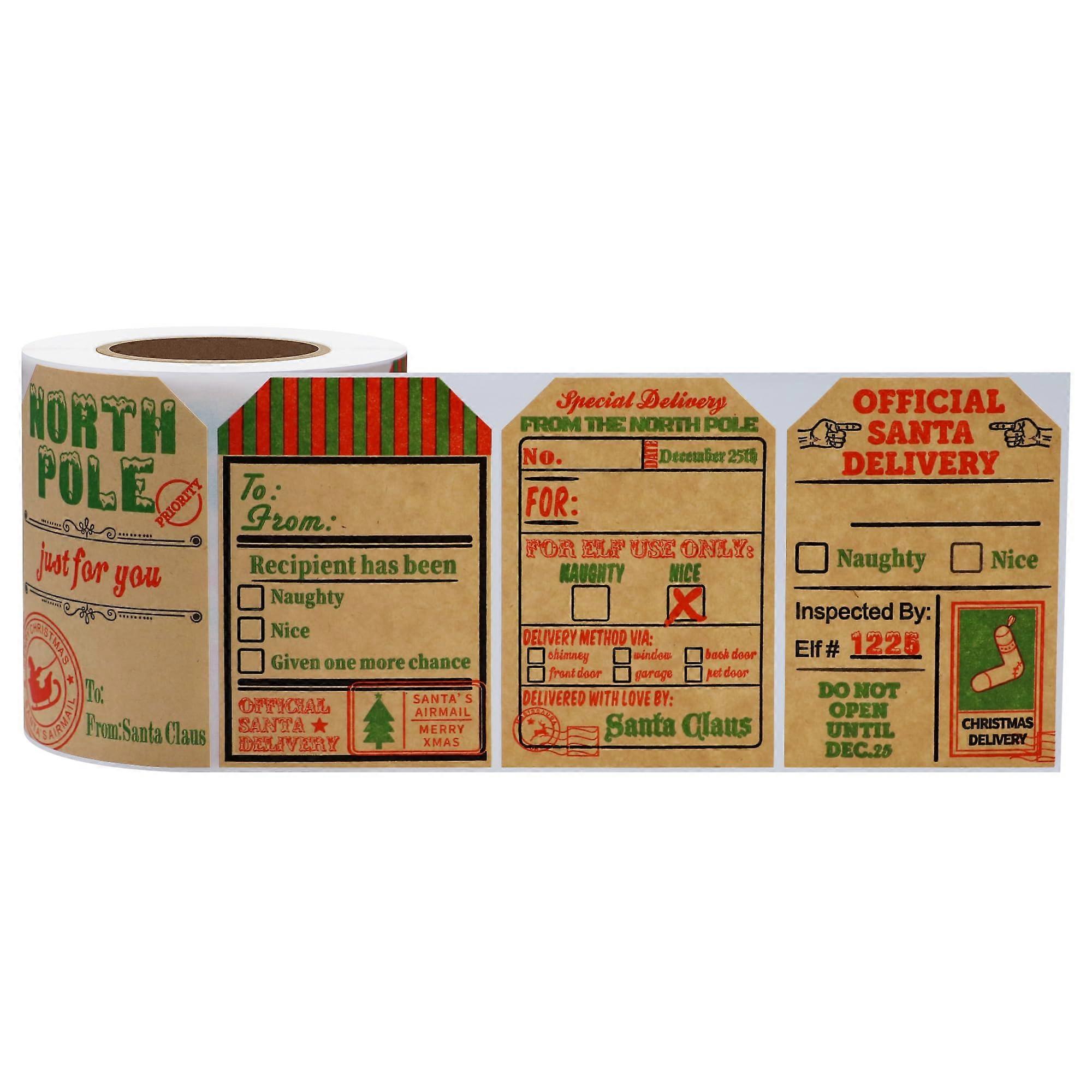 ZENGO 4 Designs Christmas Name Tag Stickers 2x3 inch Christmas Gift Tags Sticker Labels Easy to Write 200 Pcs
