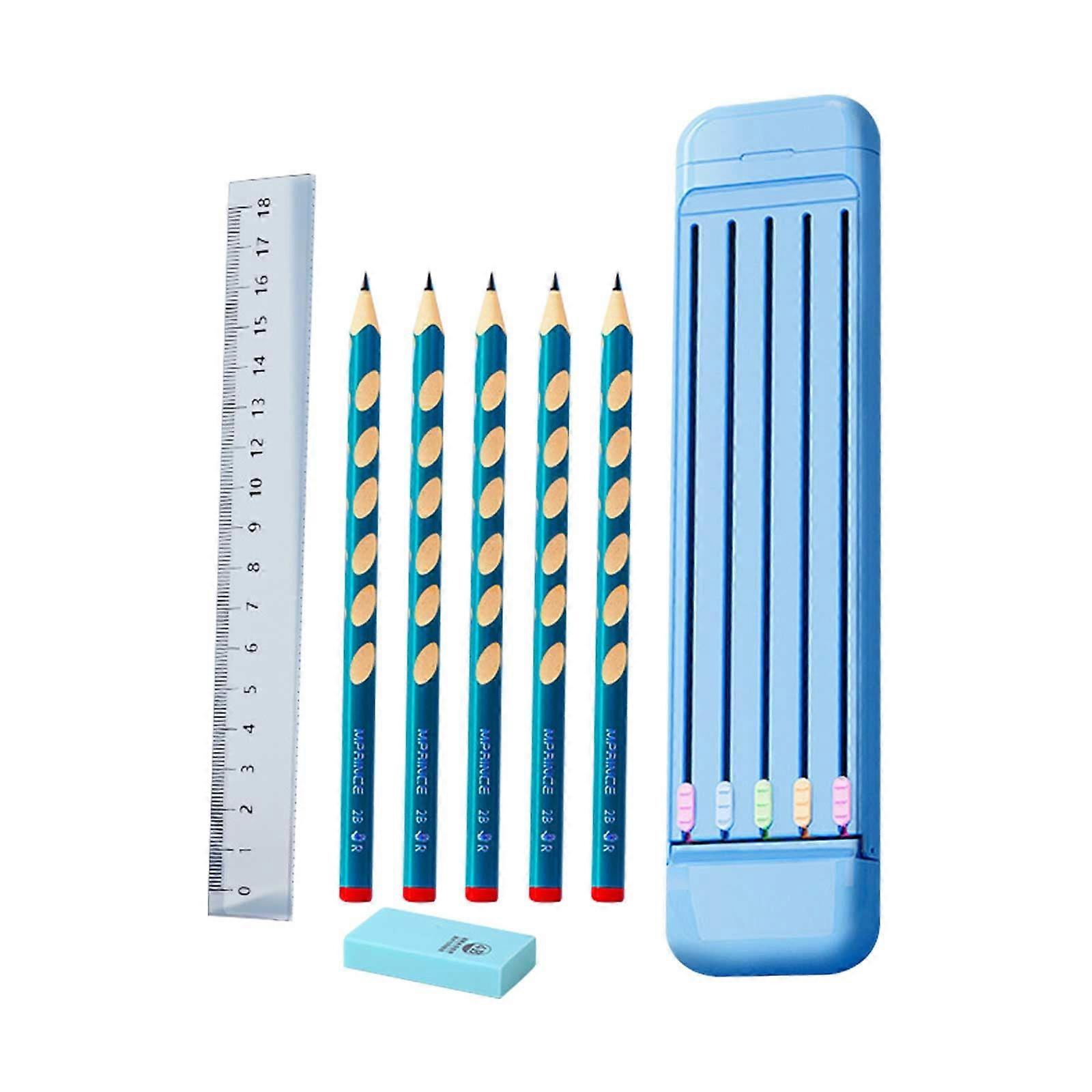 Poaug Office Supplies Stationery Kit with 5 Pencils, Eraser, Ruler, Compact Abs Pen for Case Closure - Compatible with Kids, Students, Gift Set