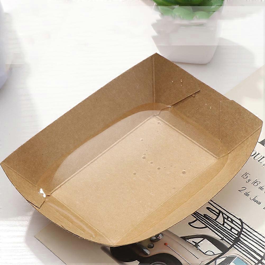 Guangmc 50Pcs Kraft Paper Trays Brown Foldable Holders for Fries Hot Dogs