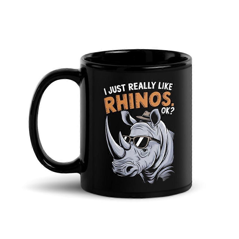 Rhinoceros Lover Black Glossy Mug, I Just Really Like Rhinos Ok (11 oz)